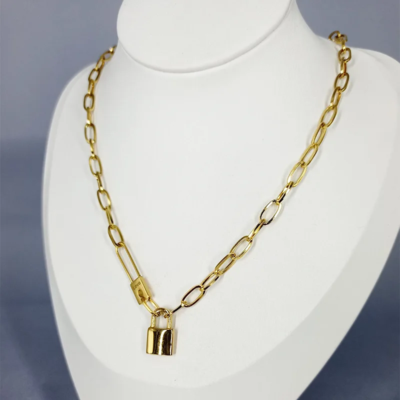 100% Stainless Steel lock catch Necklace For Women Gold Color Metal Lock Chunky Heavy Duty Chain Choker