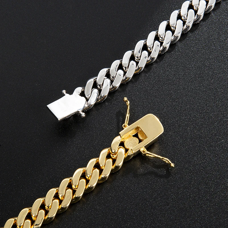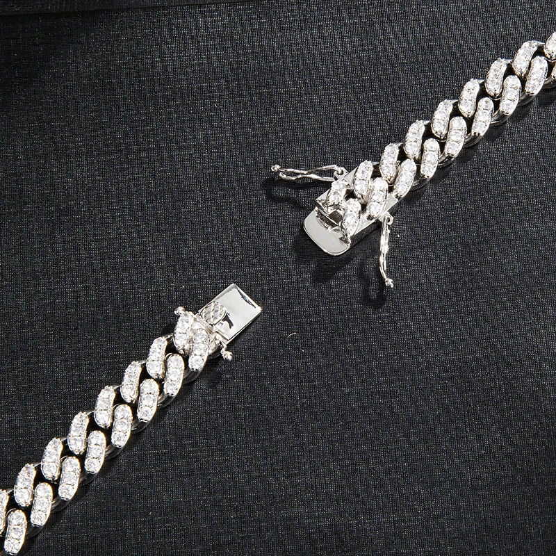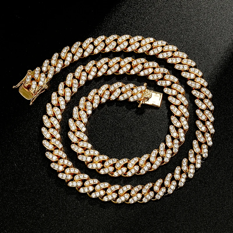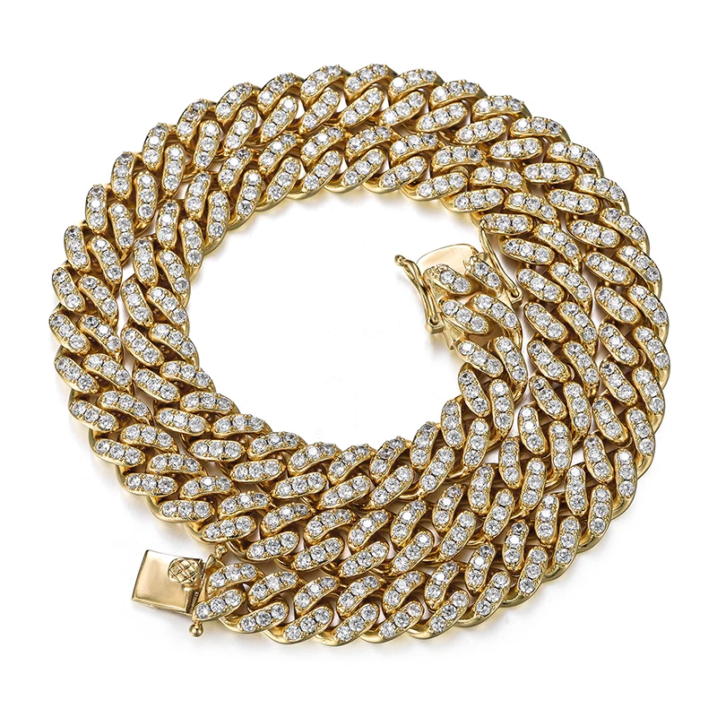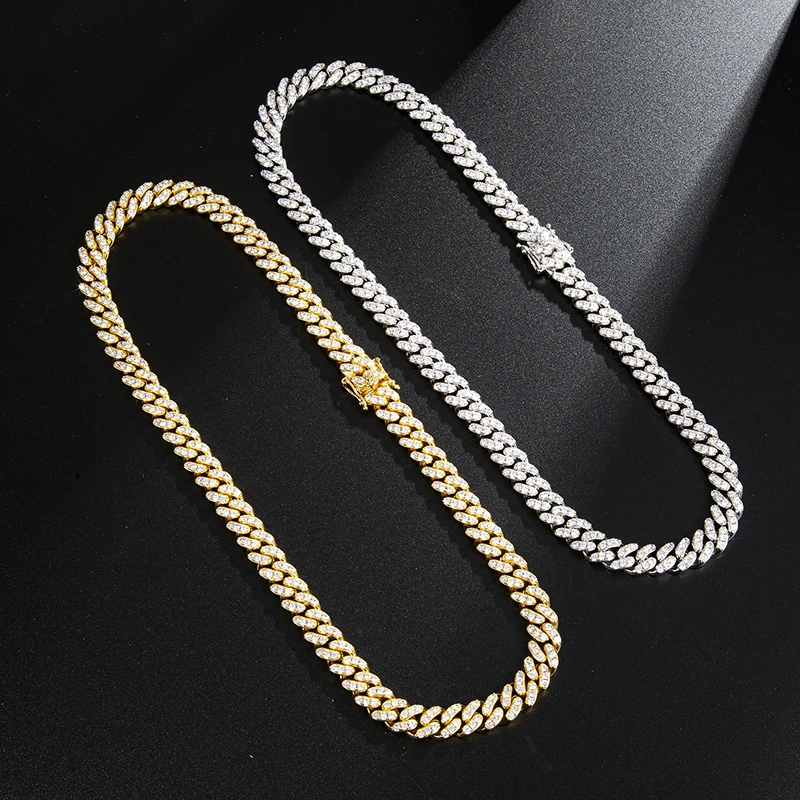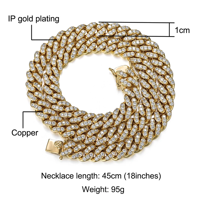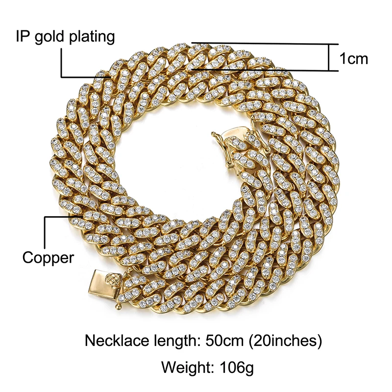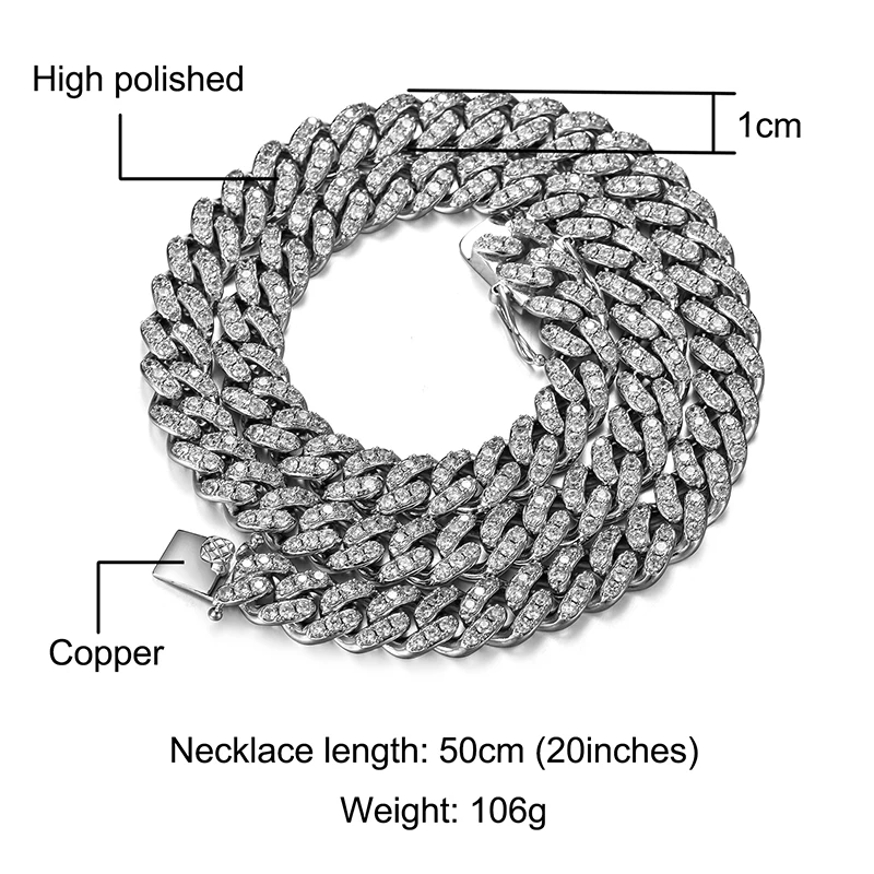 10mm Miami Cuban Chain Link Iced Out 1 Row Bling AAA Cubic Zirconia Gold Sliver Plated Choker Necklace Hip Hop Rock Jewelry