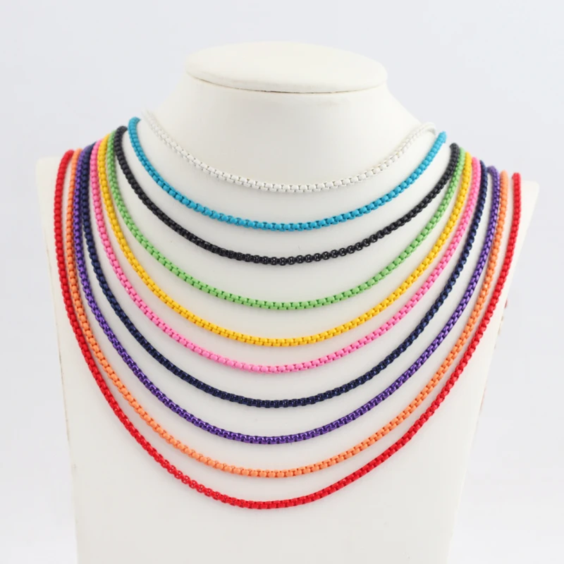 10PCS, Dainty enamelled chain necklace, box chain choker necklace, Enamel Pop Chain Necklaces, minimalist fine necklace