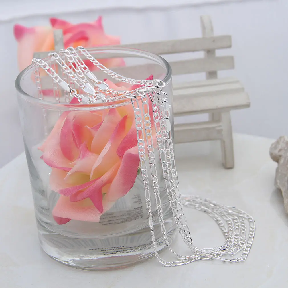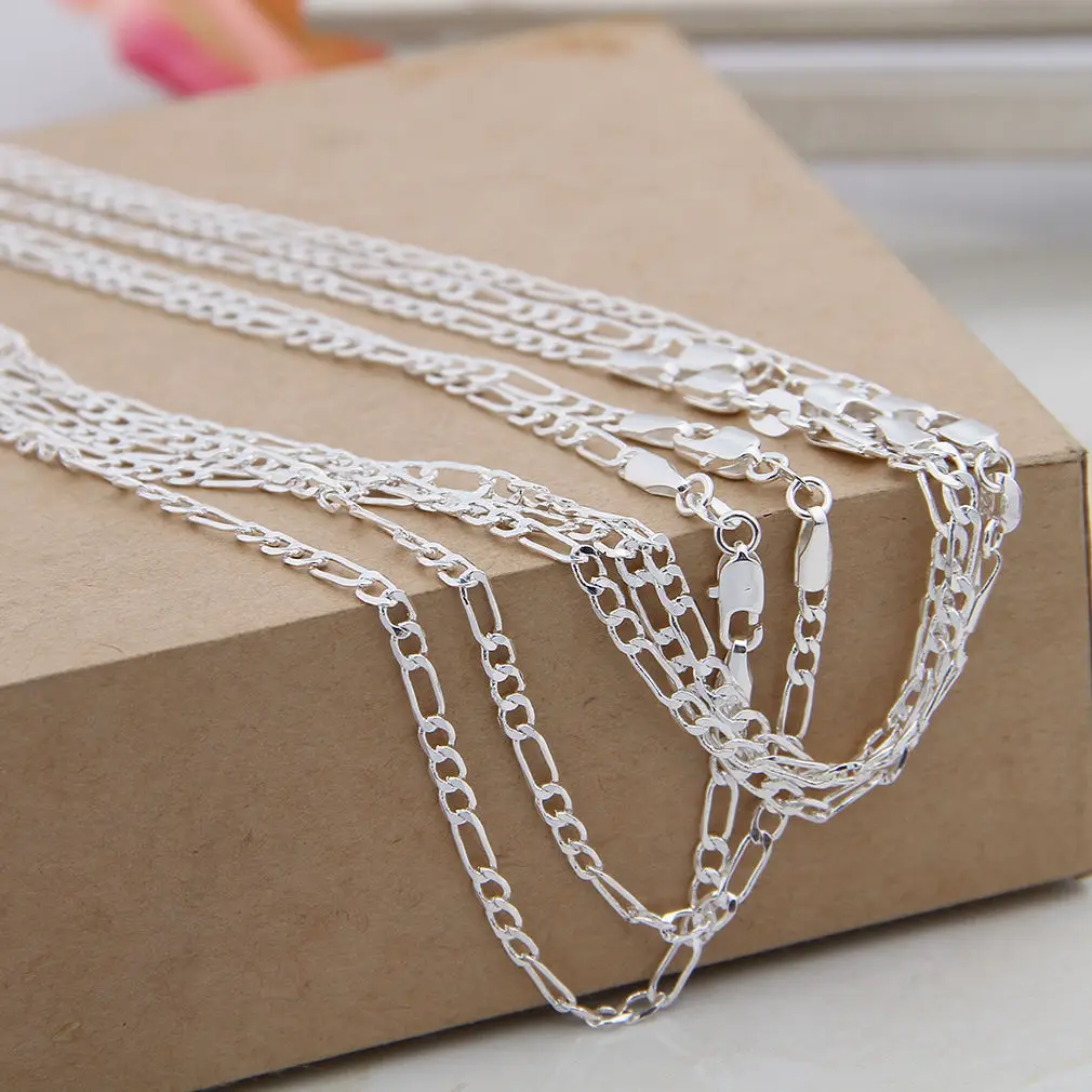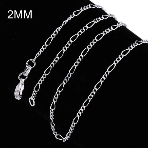 10pcs/lots 2mm Silver Plated Figaro Chain Necklaces Silver Jewelry Necklace Chains for Women 16"-30"