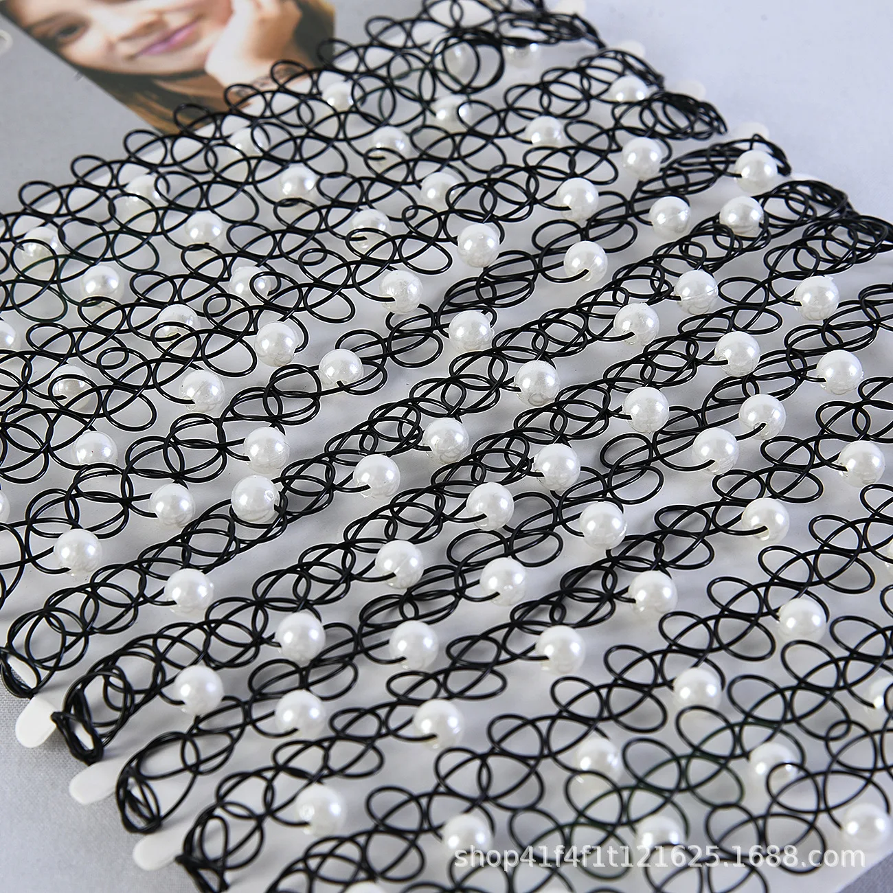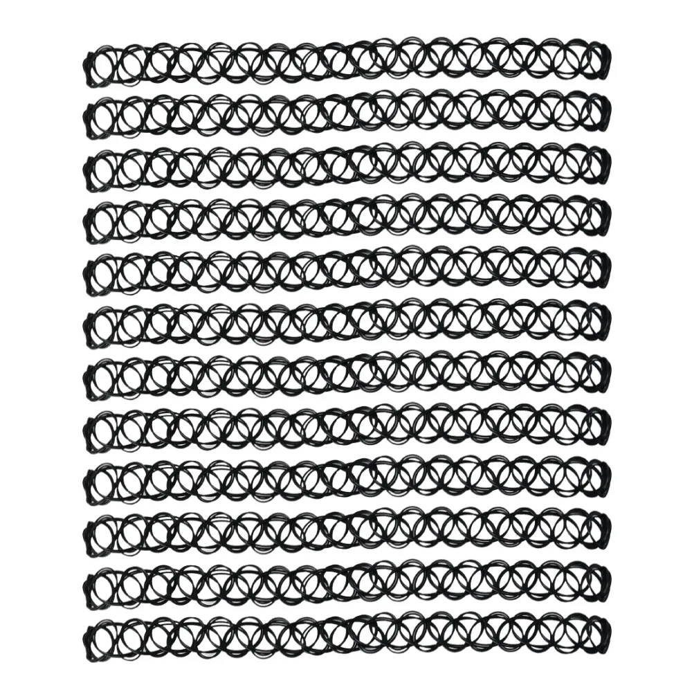 12 pcs/Set Fishline Tattoo Black Chokers Necklace Vintage Stretch Henna Gothic Punk Elastic Hollow Chocker Women Jewelry HOT