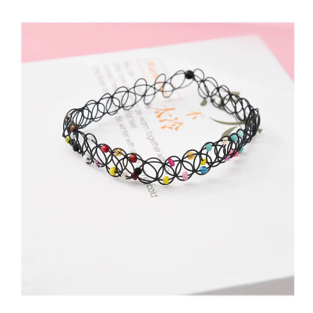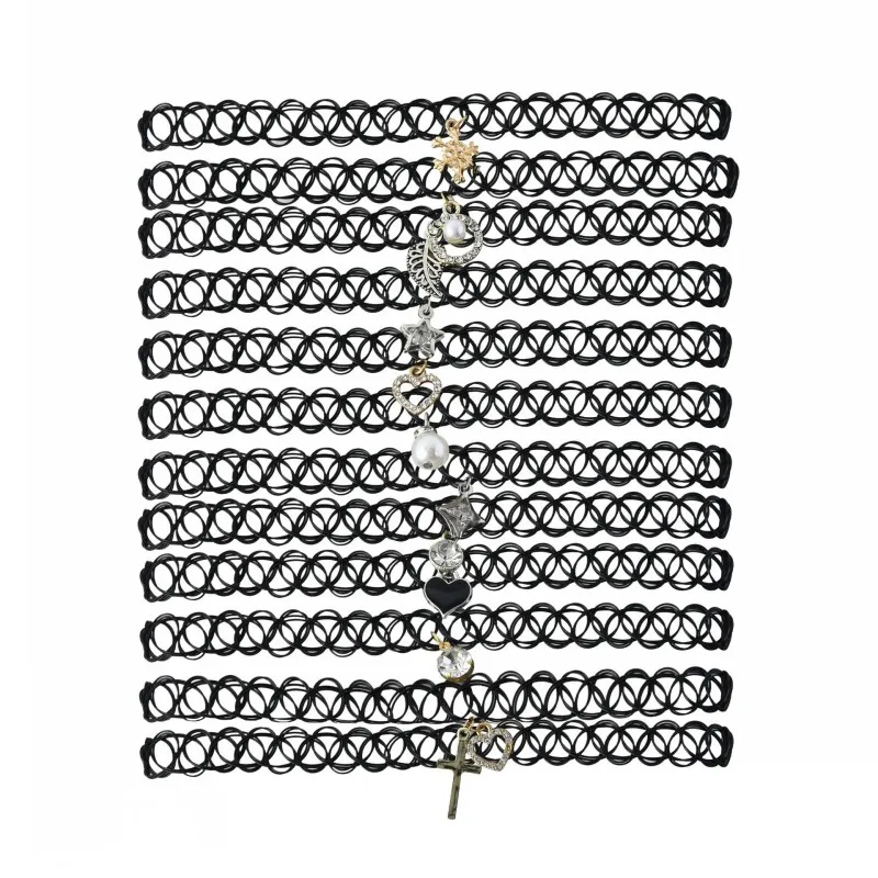12 pcs/Set Fishline Tattoo Black Chokers Necklace Vintage Stretch Henna Gothic Punk Elastic Hollow Chocker Women Jewelry NICE