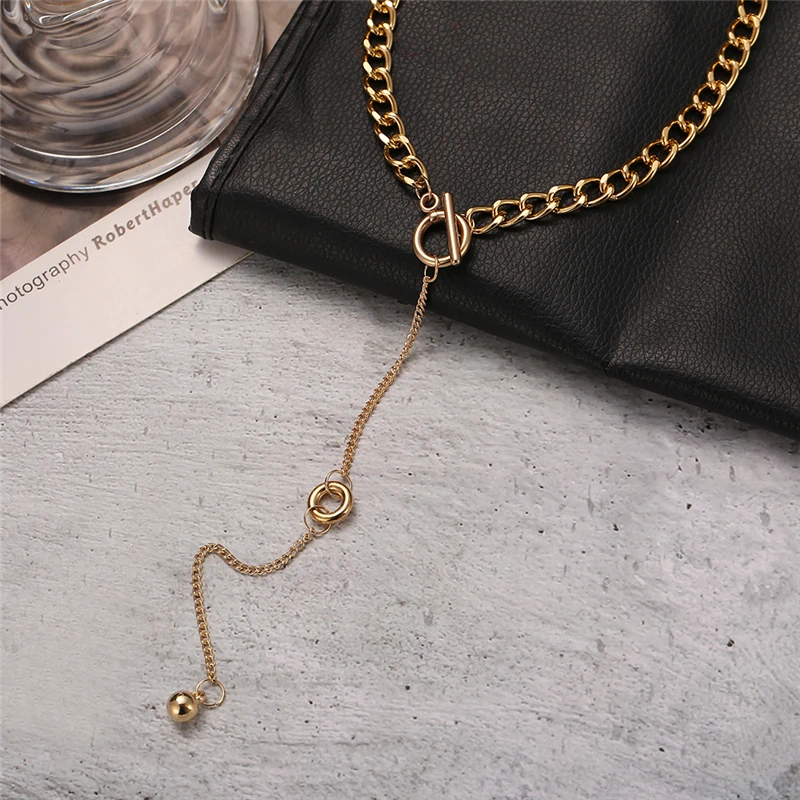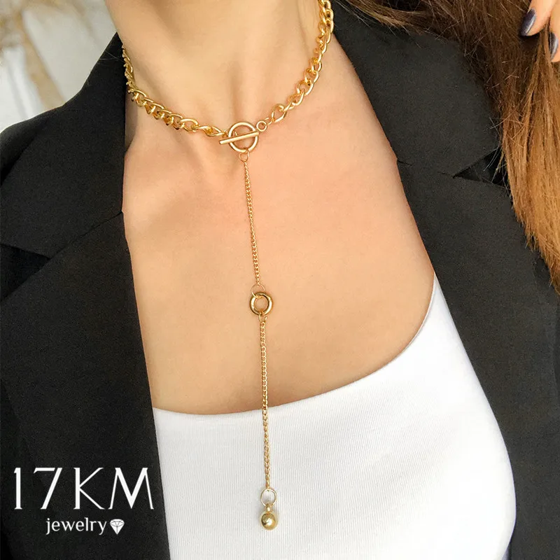 17KM Trendy Gold Long Chain Choker Necklace For Women Small Ball Pendant Necklace Lock Choker Necklaces 2021 Jewelry