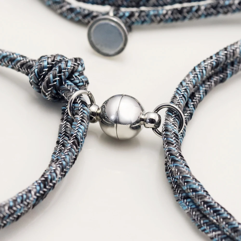 1Pair Personalized Custom Name Date Couple Bracelets Mutual Attraction Rope Braided Bangle With Magnetic Bell Gift For Lover