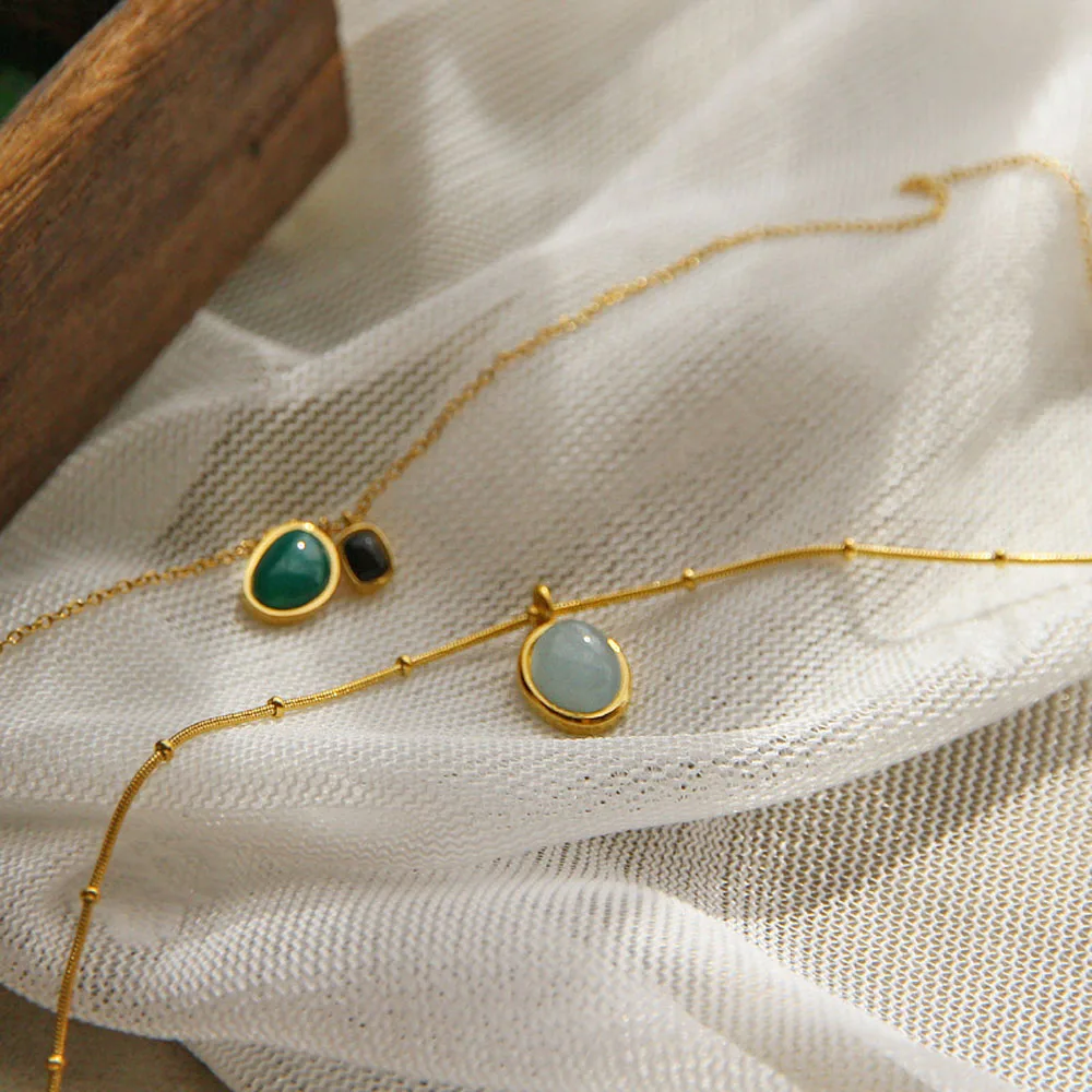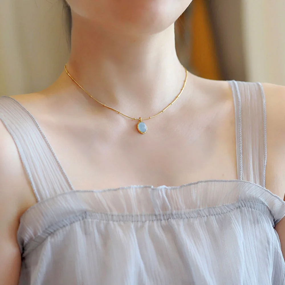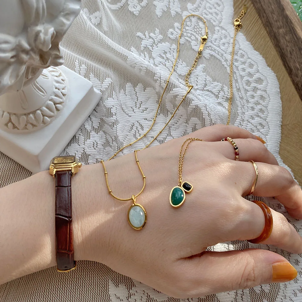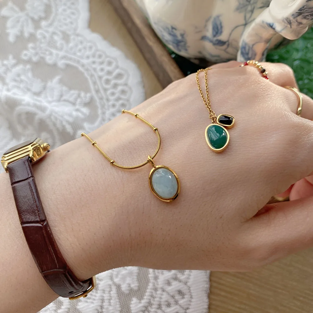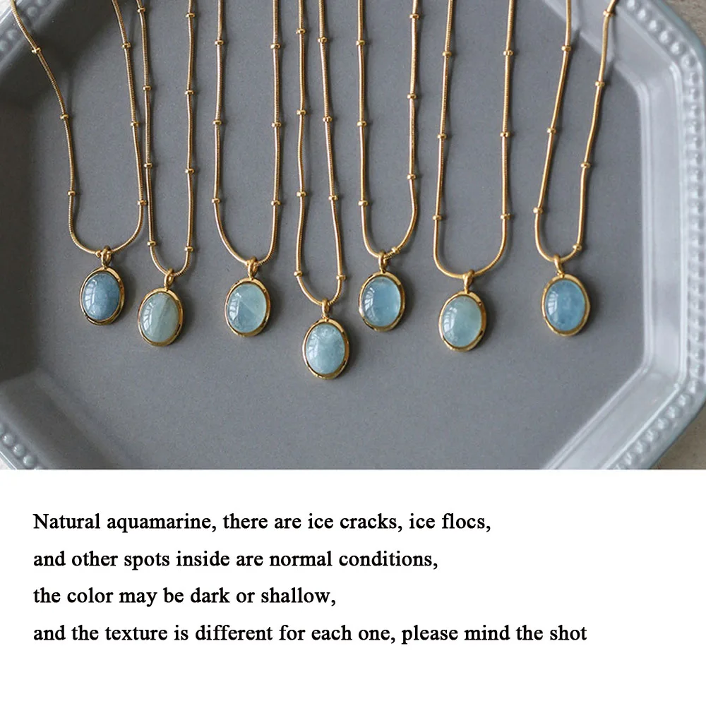 1PC Aquamarine Emerald Natural Stone Pendant 18K Gold Filled Necklace Alien Stone Choker Delicate Charm Choker Ins Jewelry