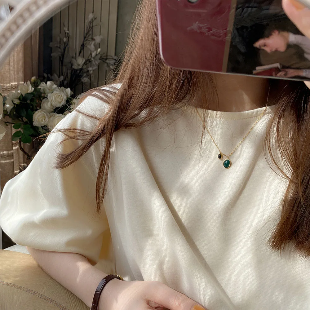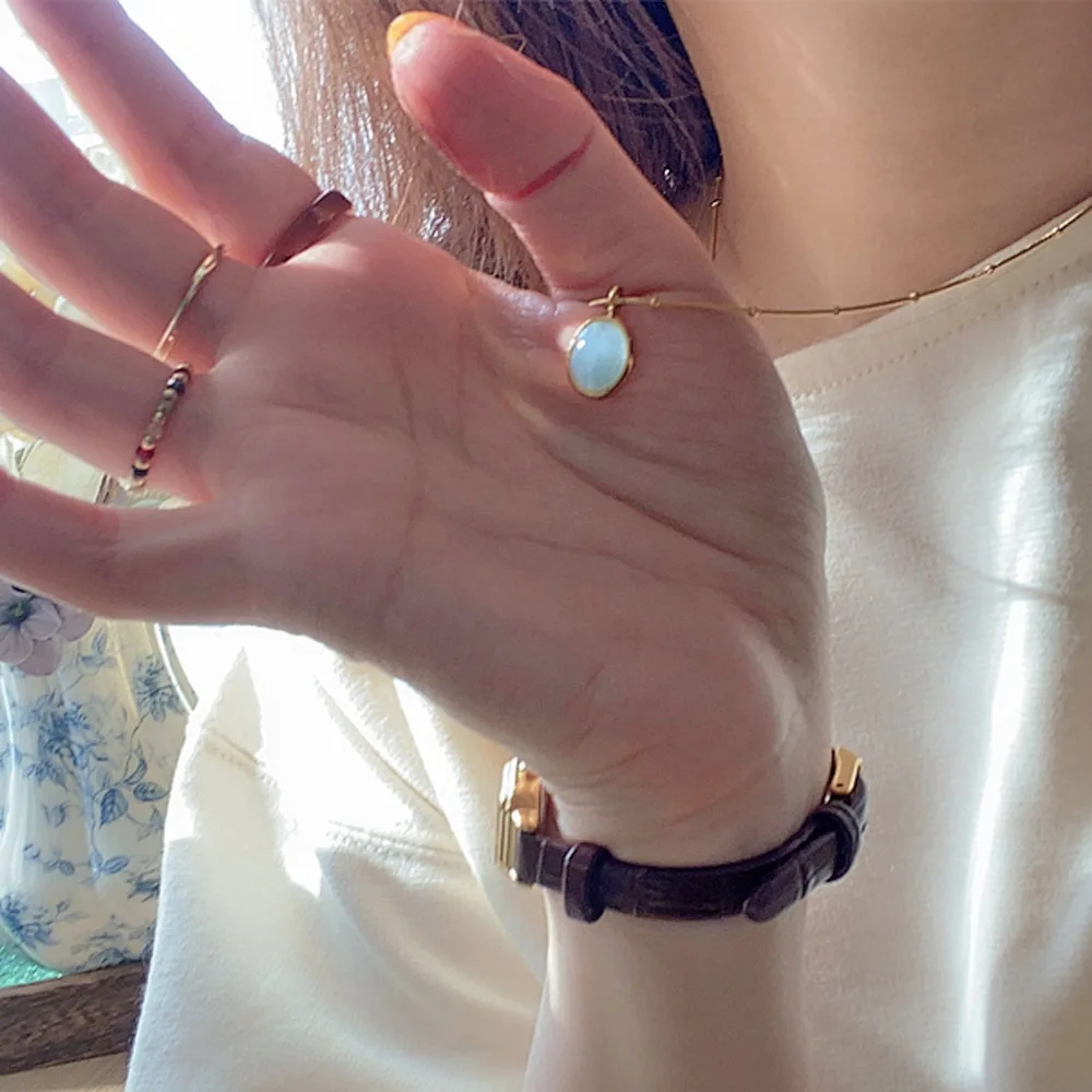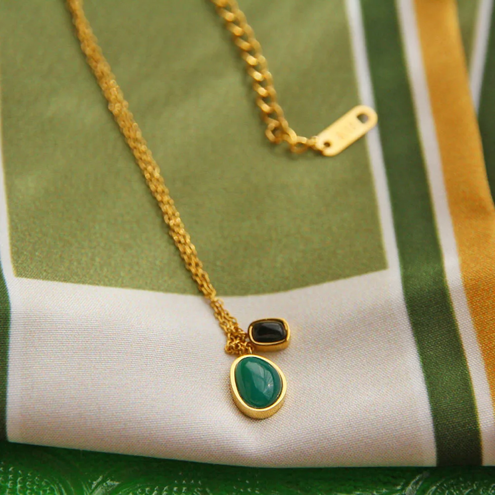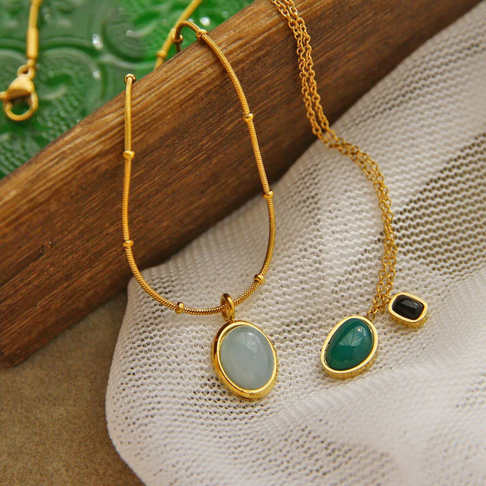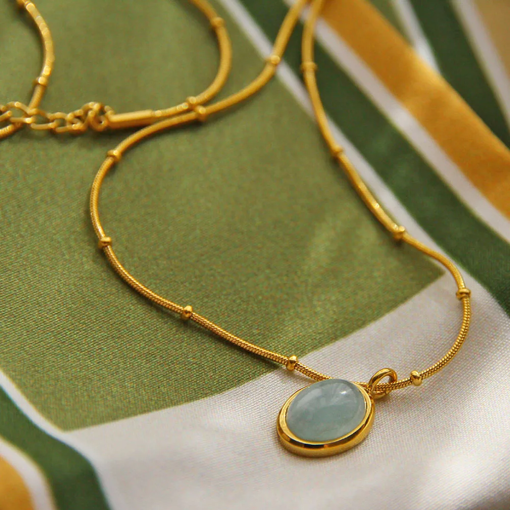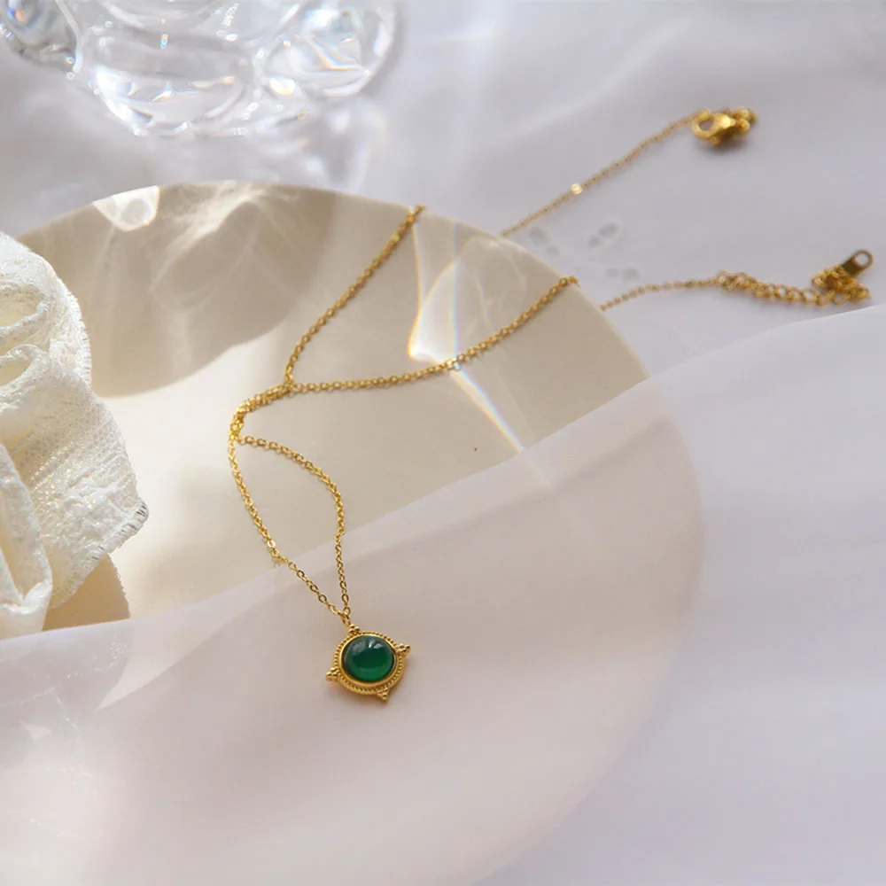 1PC Aquamarine Emerald Natural Stone Pendant 18K Gold Filled Necklace Alien Stone Choker Delicate Charm Choker Ins Jewelry