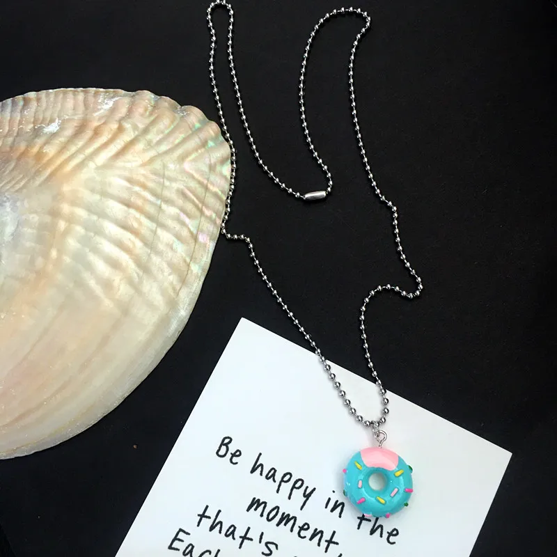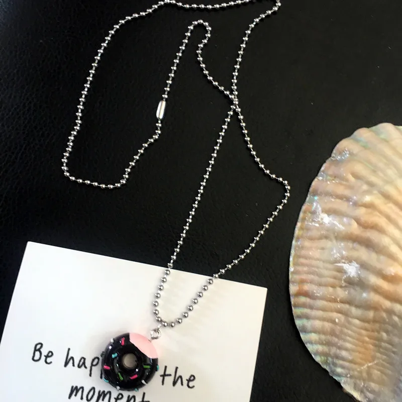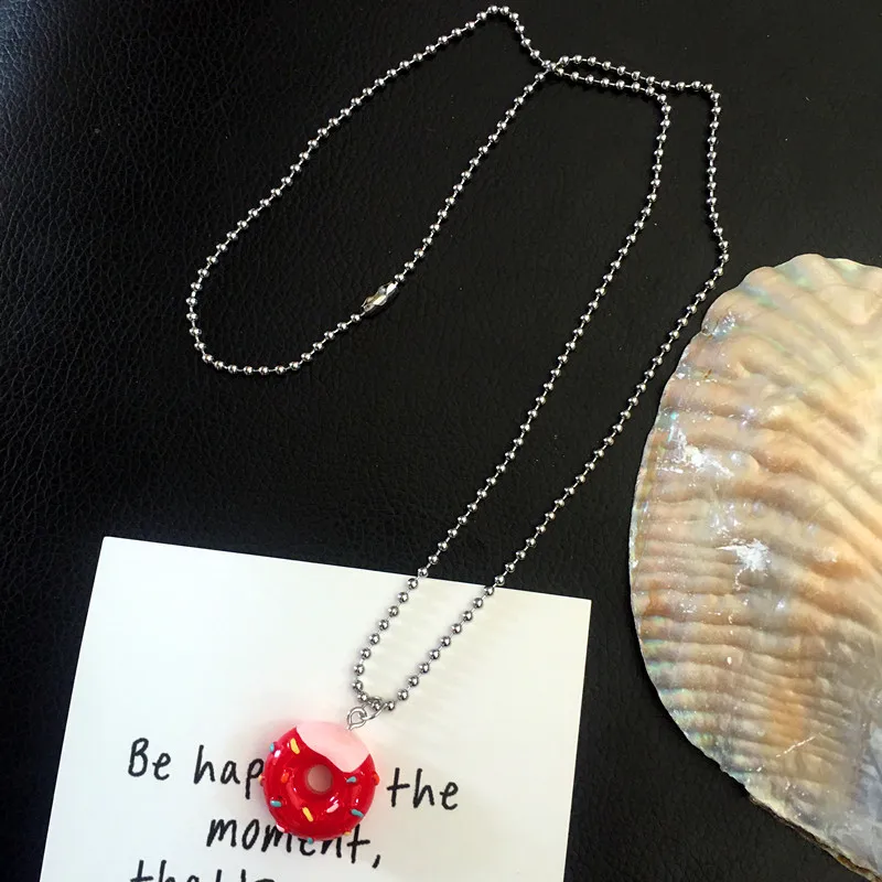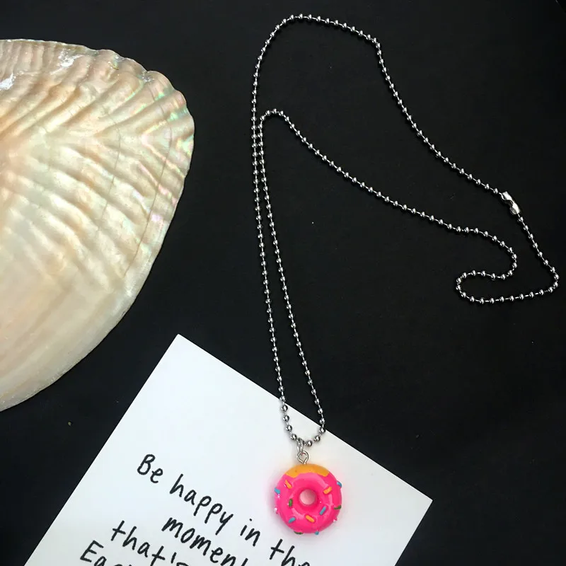 1PC Cute Sweets Necklace Pink Yellow Donut Necklaces For Girls Women Children Birthday Gift Lovely Jewelry