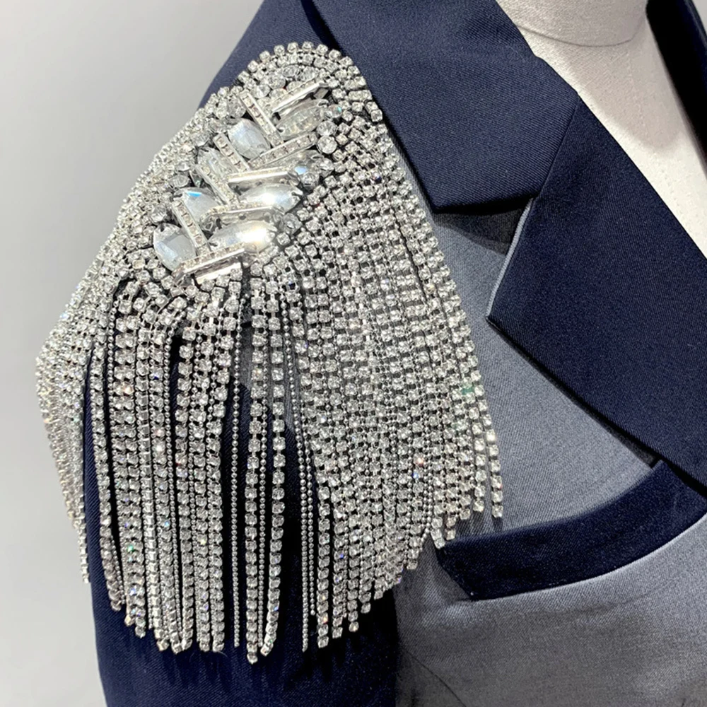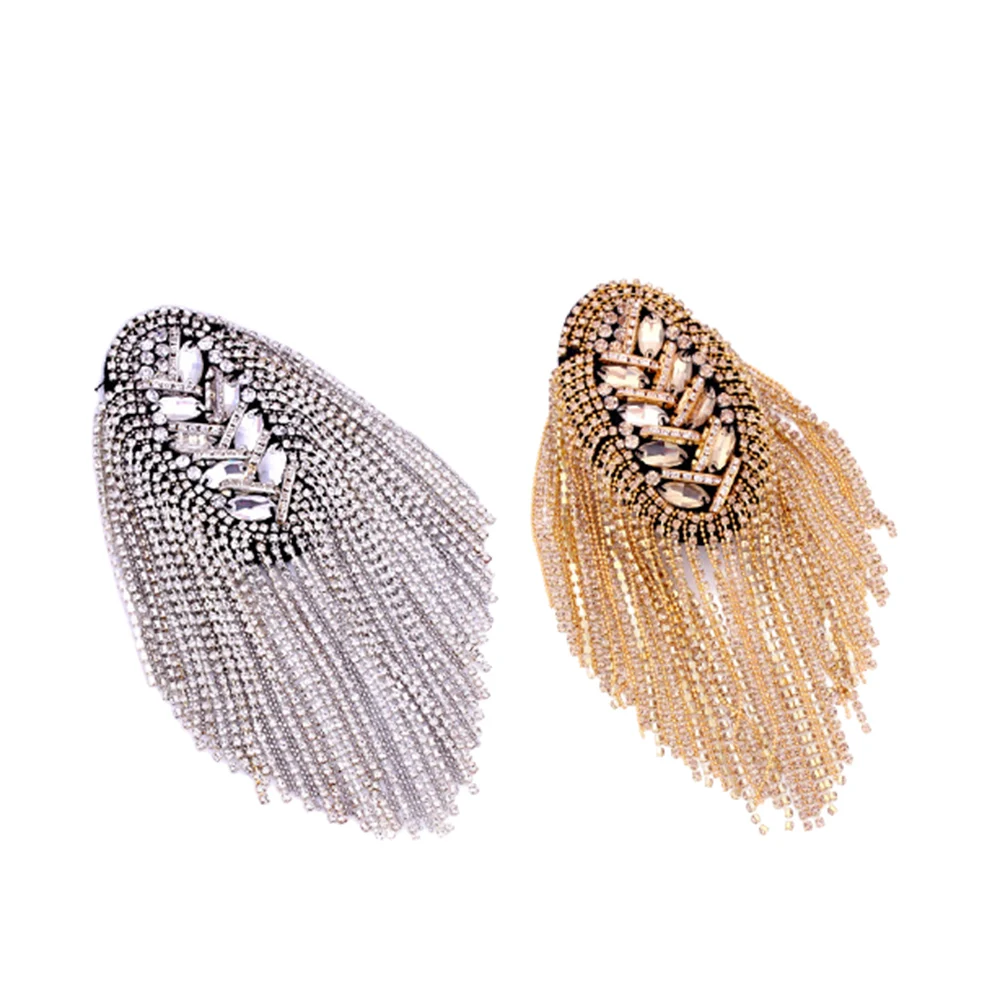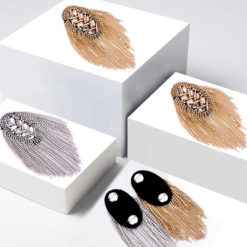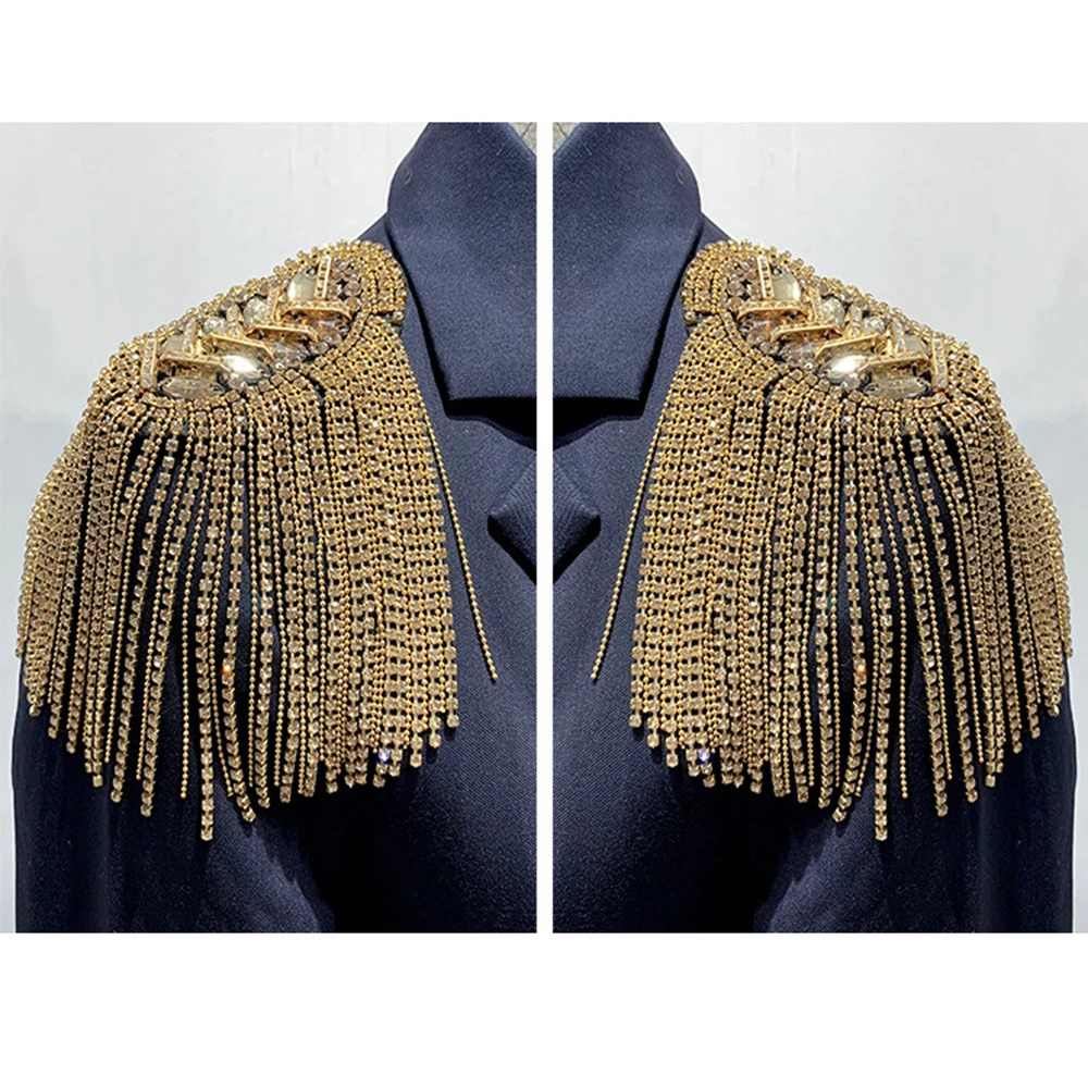 1PC Decorative Shoulder Pad Jewelry Tassel Rhinestones Gold Epaulettes Clothing Accessories Brooch Epaulet Shoulder Brooches