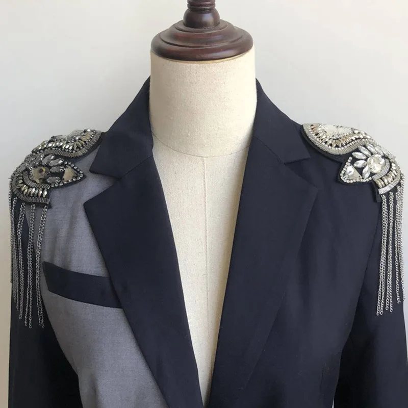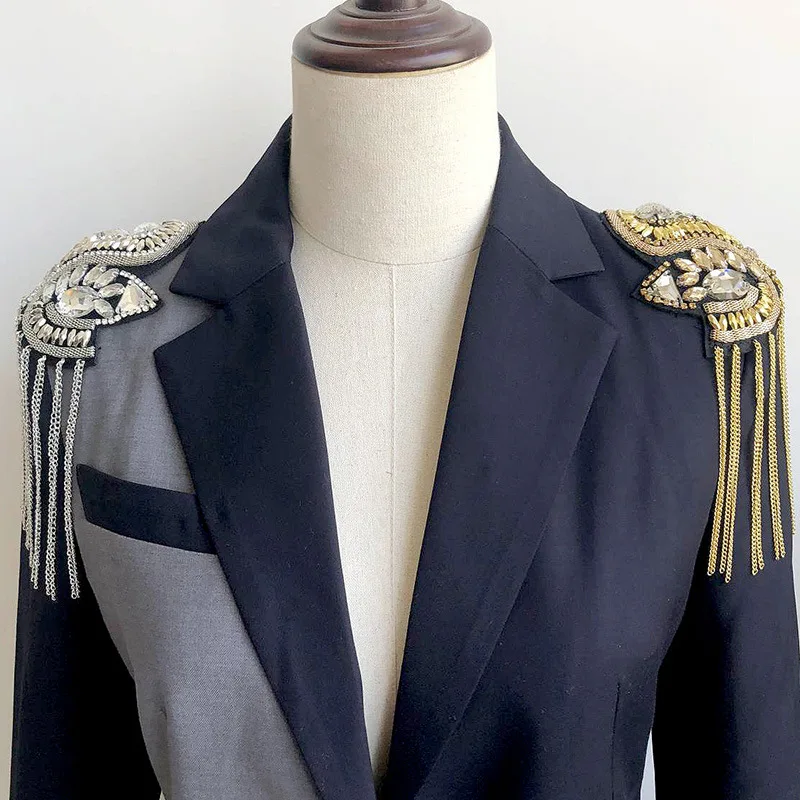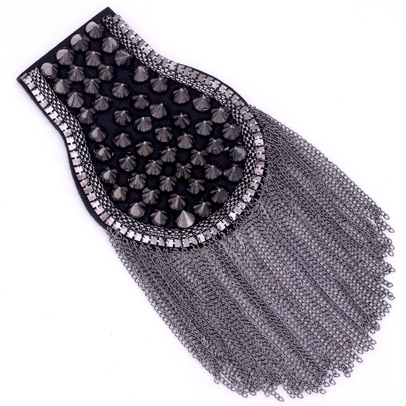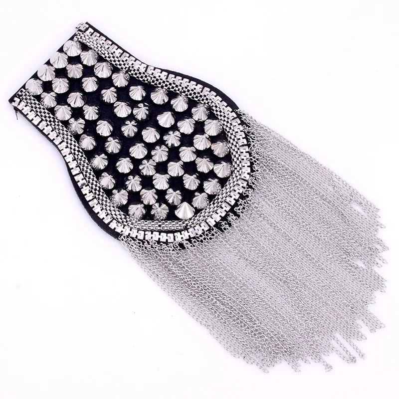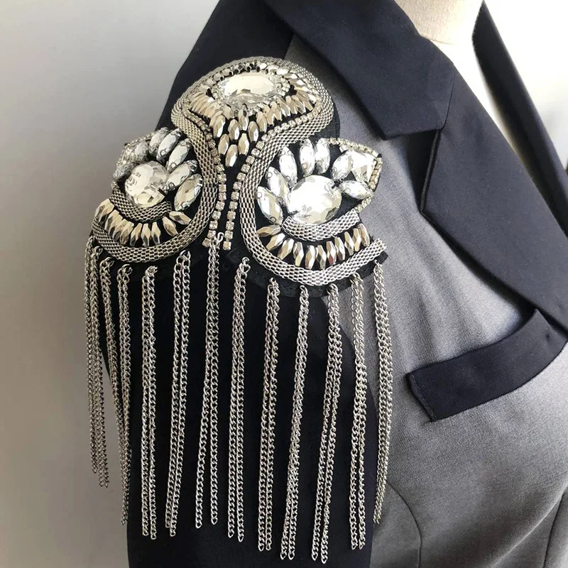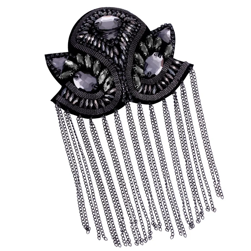 1PC Decorative Shoulder Pad Jewelry Tassel Rhinestones Gold Epaulettes Clothing Accessories Brooch Epaulet Shoulder Brooches