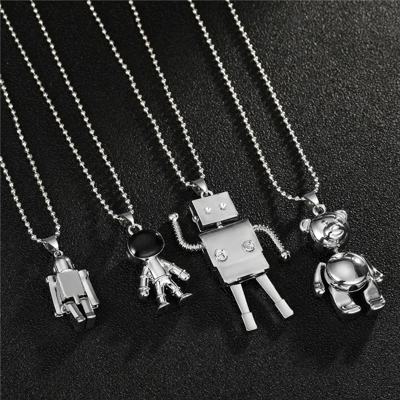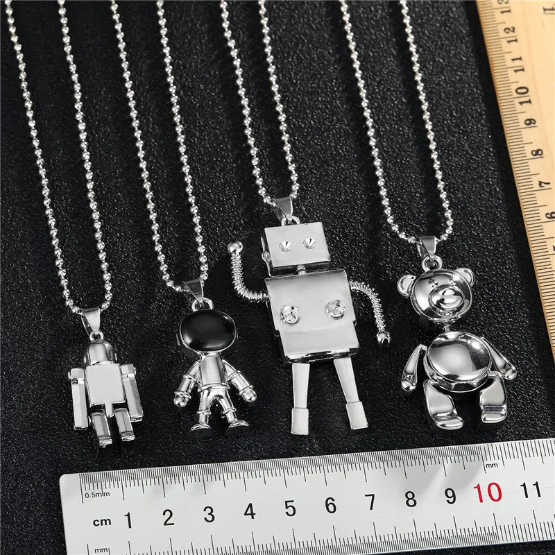 1PC Punk Hiphop Cartoon Astronaut Robot Bear Necklace For Women Men Trendy Creative Rock Metal Pendant Collar Choker Jewelry