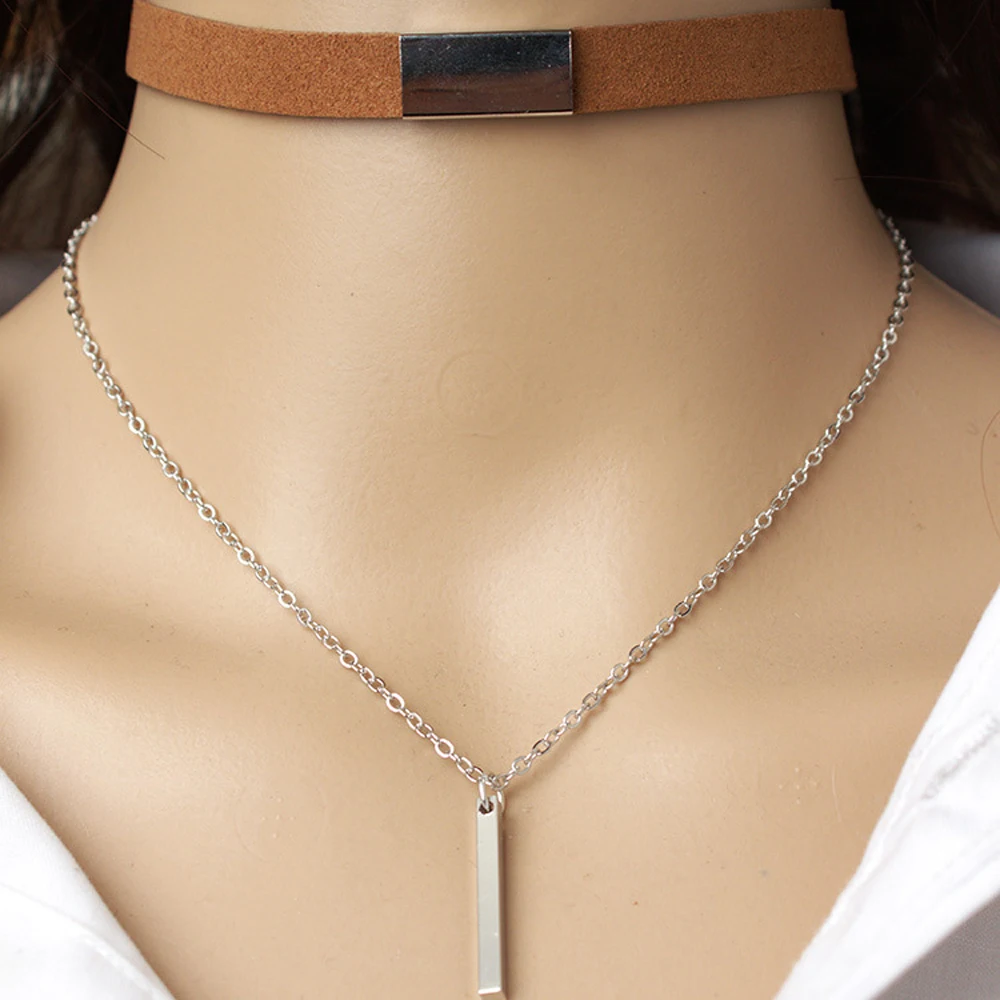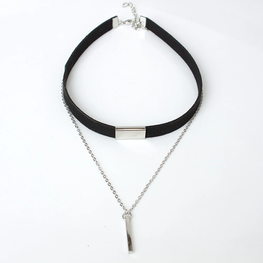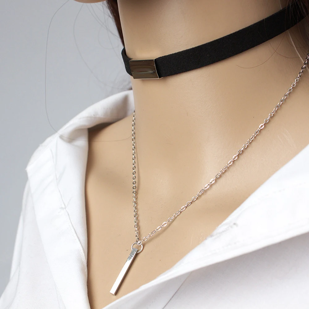 2021 Black Velvet Choker Necklace Strip rope Chain Bar Square tube strip Chocker Women collar mujer collier femme ras du cou