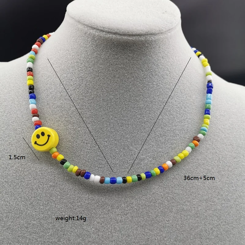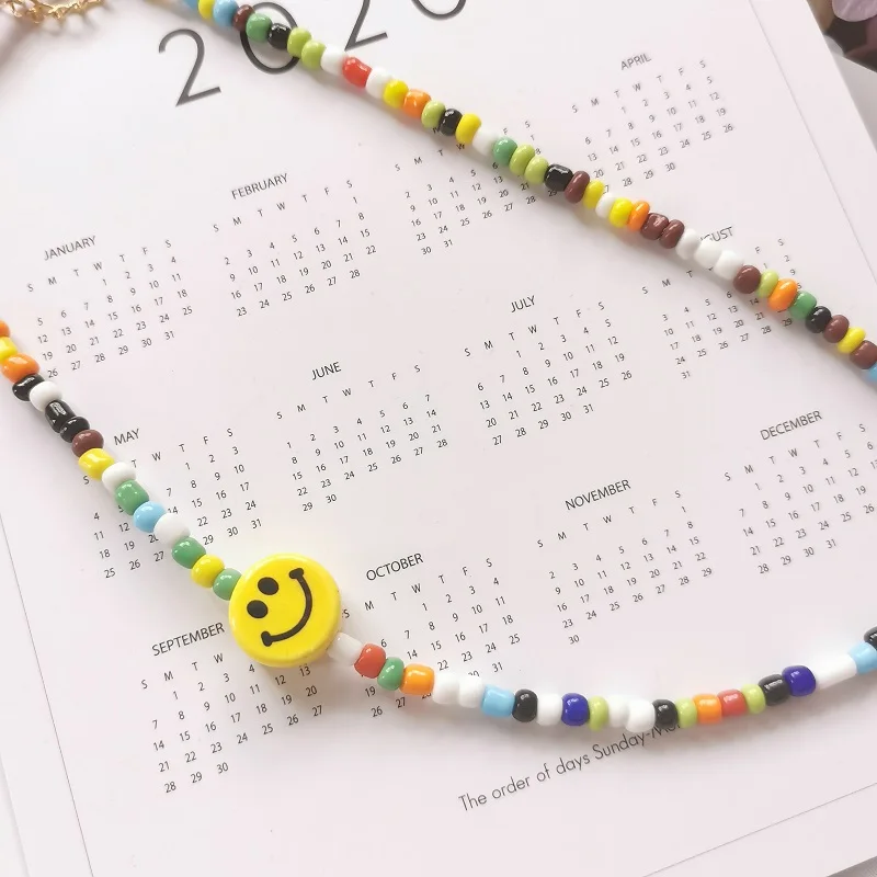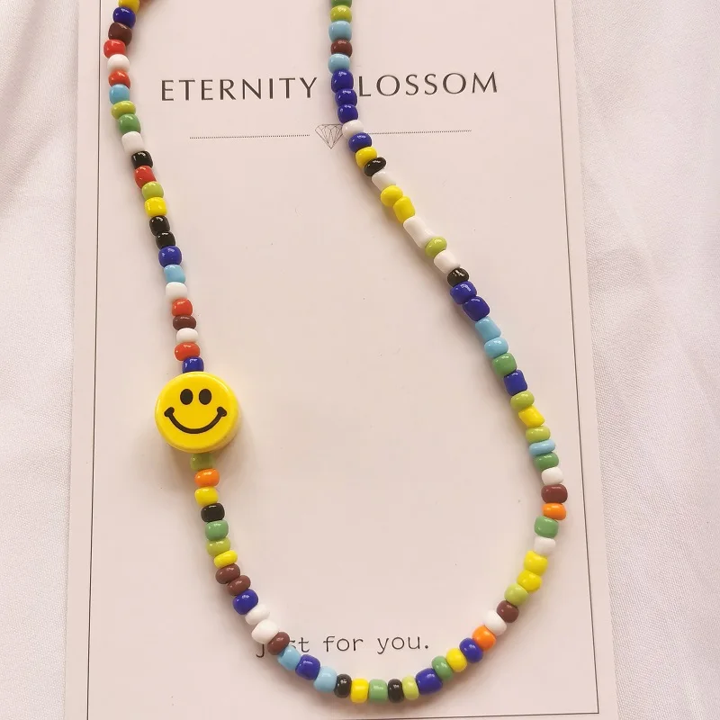 2021 hip-hop rock punk style ceramic smiling face colorful beads men's and women's general trend necklace