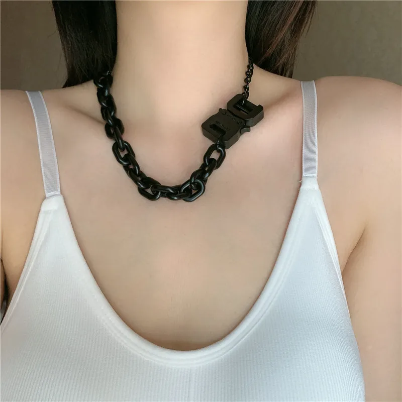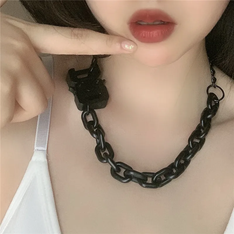 2021 Hiphop Matte Black Chains Chokers Necklaces for Women/Men Rock Jewelry Big Clasp Pendant Necklace Chunky Bijoux