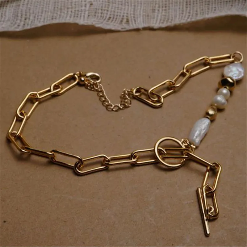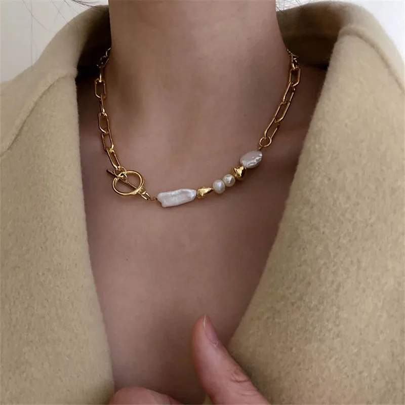 2021 Korean Round Buckle Necklace Necklace Bracelet Female, Female Party Accessory Gift Gold Pearl Natural Cm Women Bamboo