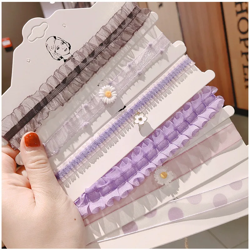 2021 Kpop Summer Sweet Cute Egirl Chic Aesthetic Purple Lace Flower Short Clavicle Necklace BFF Harajuku Kawaii Jewelry
