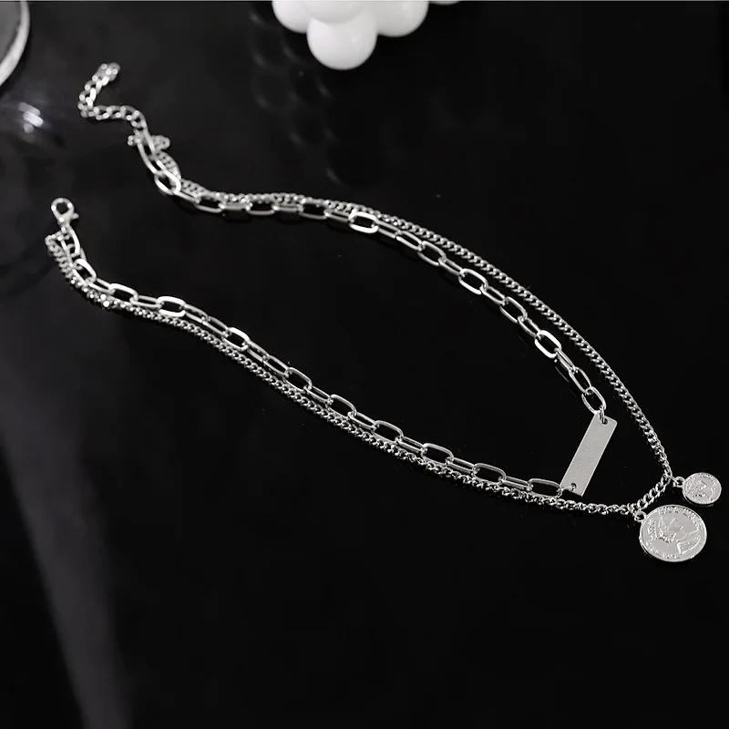 2021 Necklace Korean Like Ins Cool Wind Double Layer Hip Hop Niche Design Sense Clavicle Chain