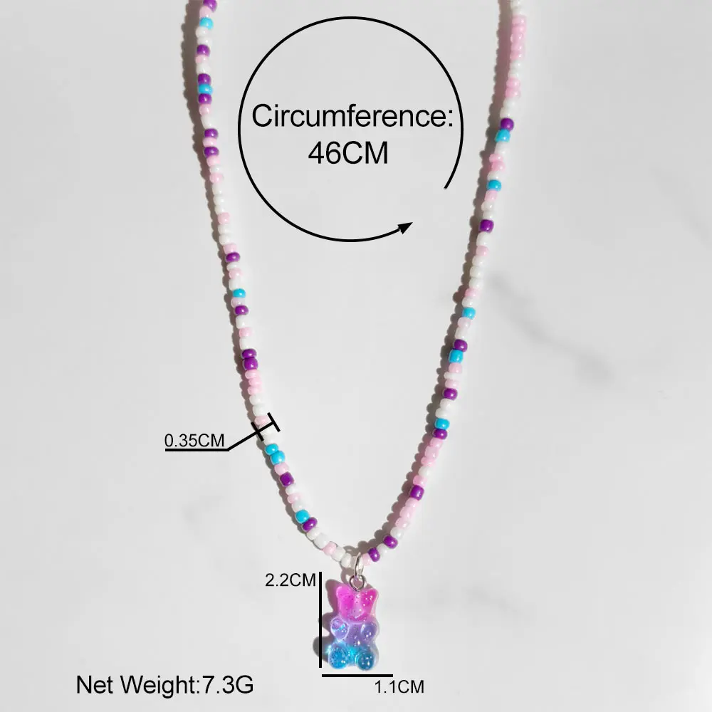 2021 Summer Rainbow Beaded Gummy Bear Pendant Necklace For Women Cute Cartoon Animal Rice Bead Choker Necklaces Boho Jewelry