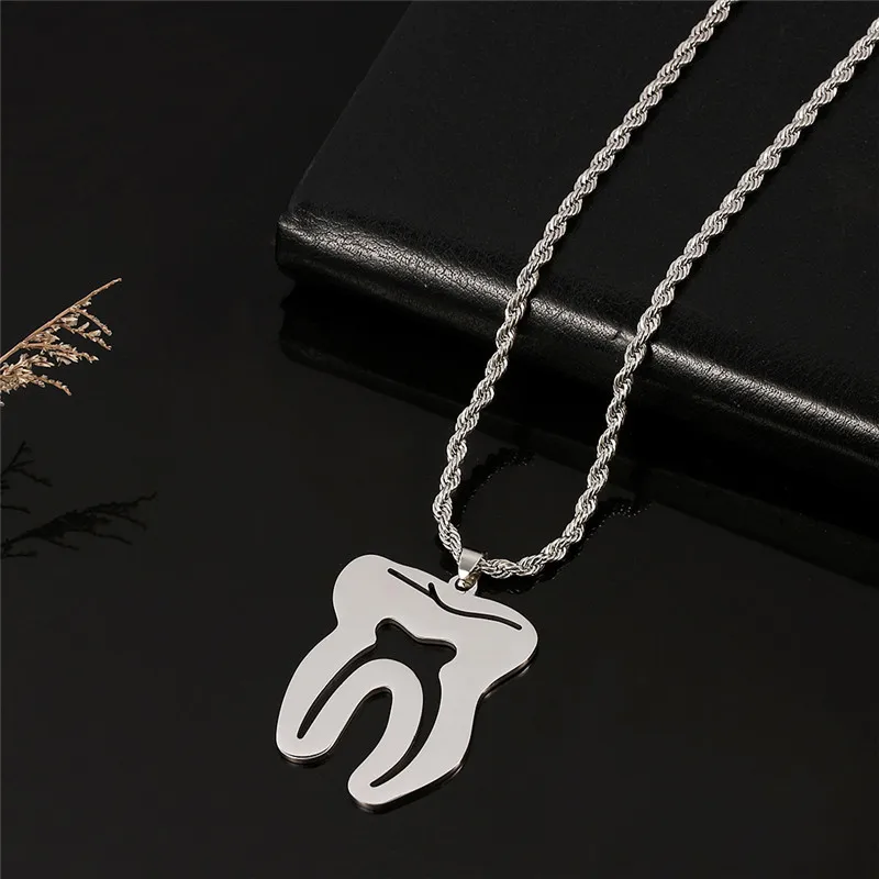 2021 Tooth Stainless Steel Chain Necklace for Women Men Silver Color Dentist Christmas Gift Grunge Jewelry