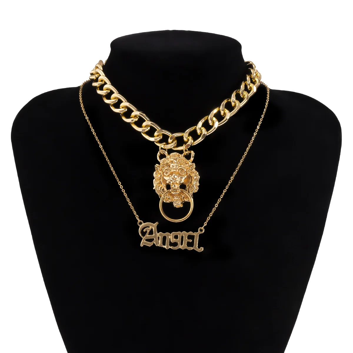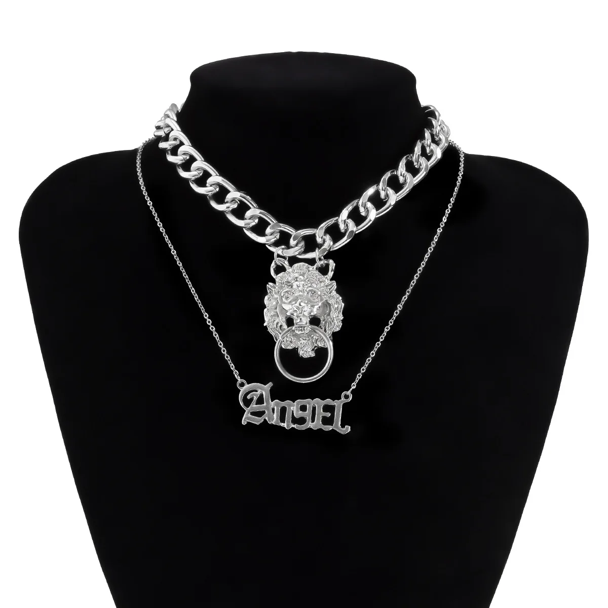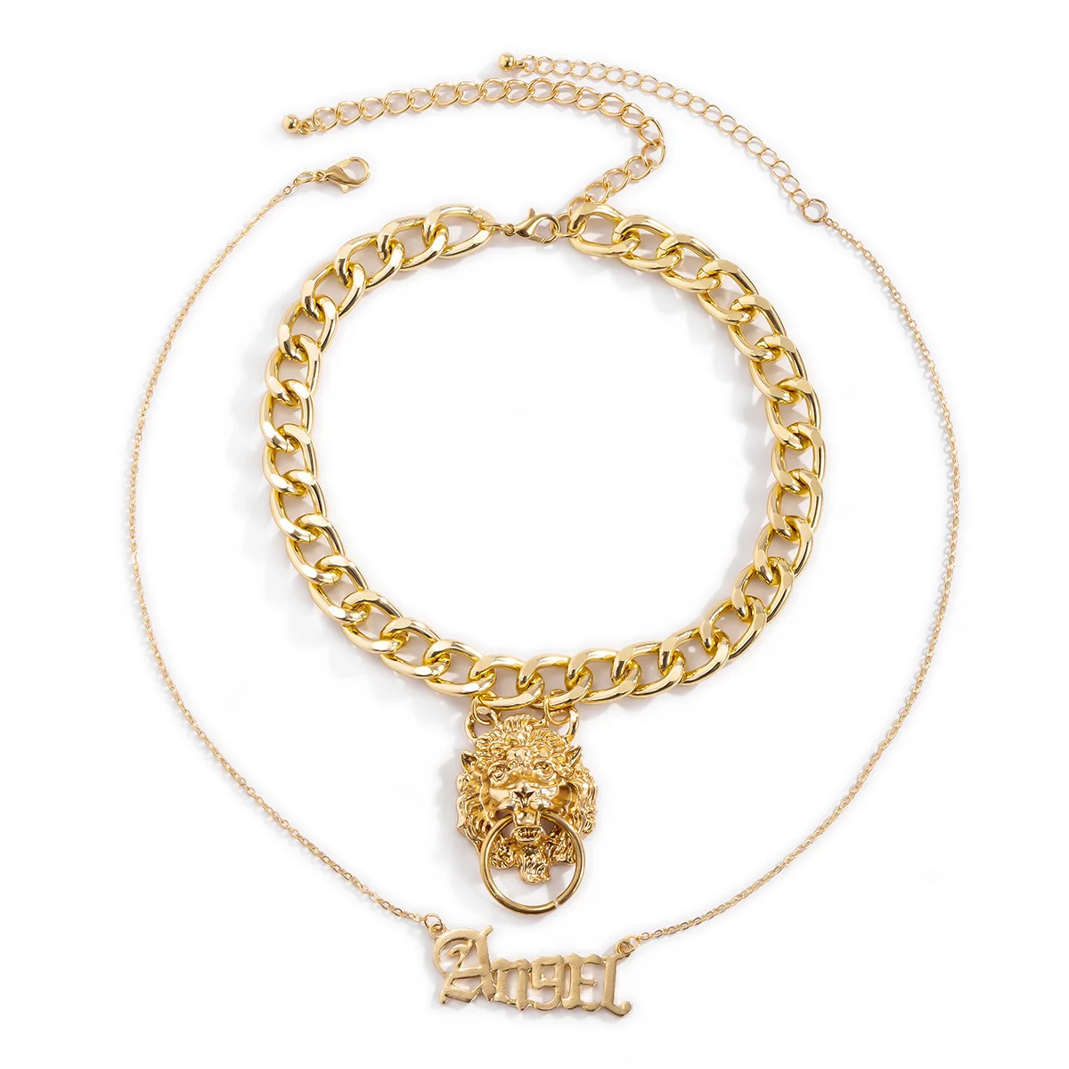 2021 Women Goth Angel Lion Head Pendant Necklace Sets For Women Big Chunky Chain Choker Steampunk Slytherin Jewelry Gift