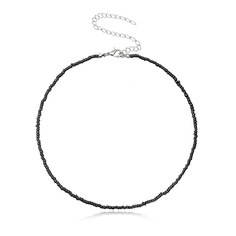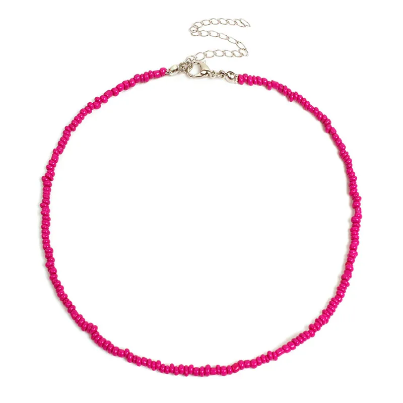 2022 Bohemian Rainbow Seed Beaded Chain Necklace For Women Pure Color Crystal Beads Beach Boho Choker Necklace Jewelry Gift