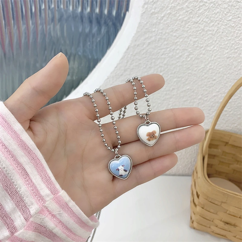 2022 Korean Kawaii Cute Bear Sweater Heart Pendant Neck Bead Chain Necklace Collar For Women Girls Bff Aesthetic Jewelry