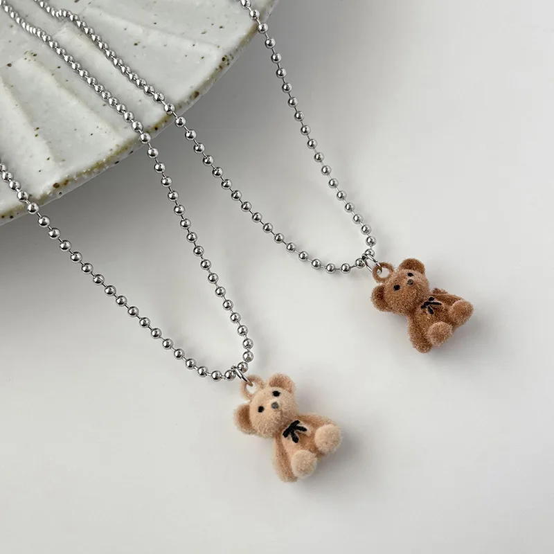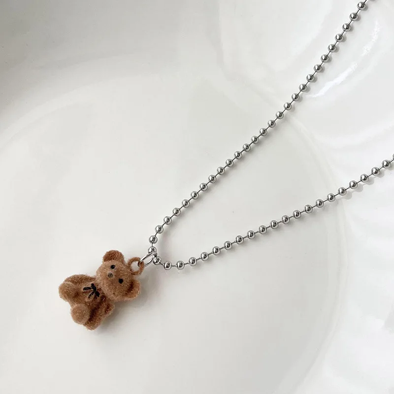 2022 Korean Kawaii Funny Plush Bear Pendant Necklac Cute Cartoon Bowknot Bear Statement Necklace for Women Jewelry