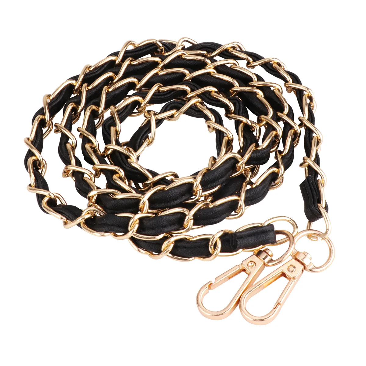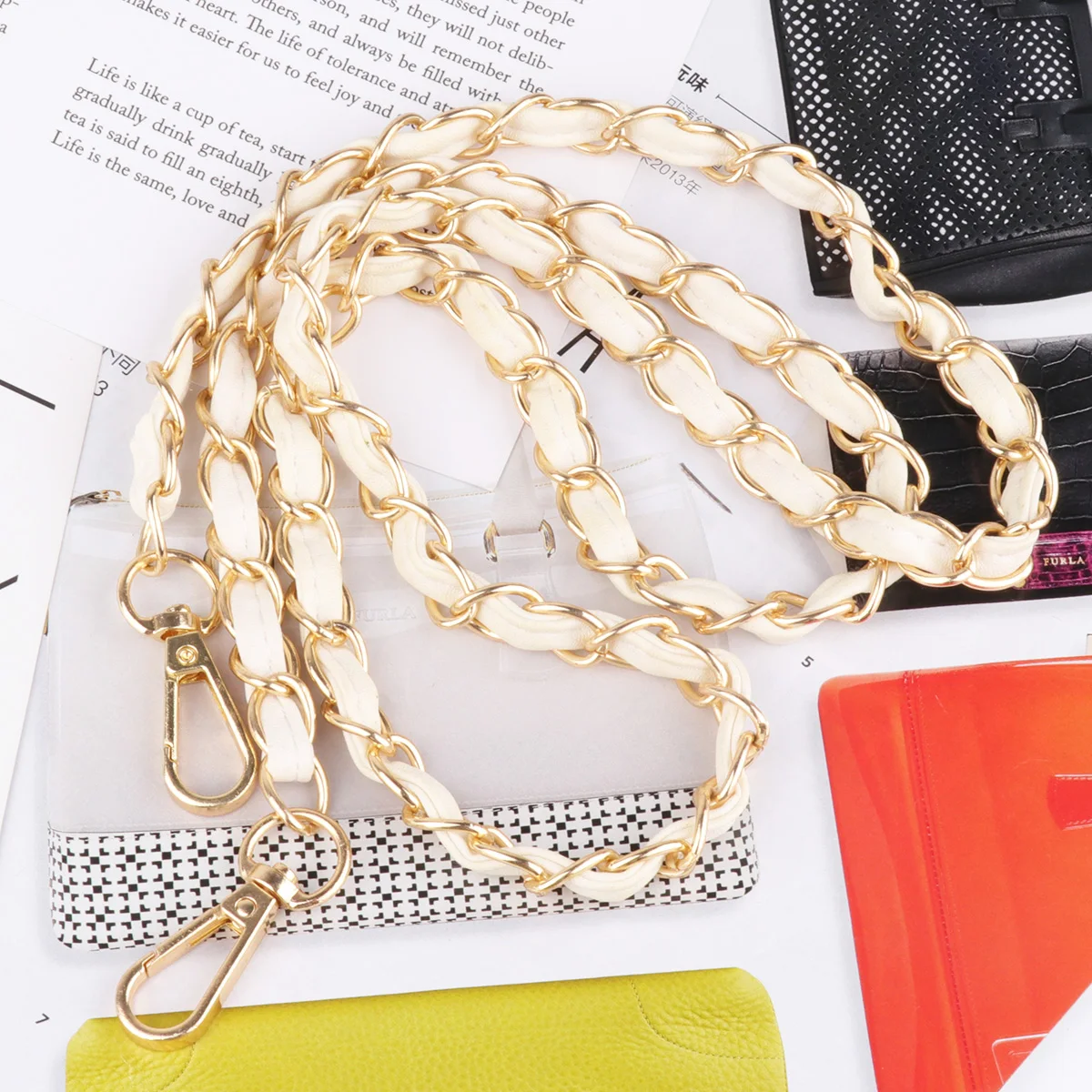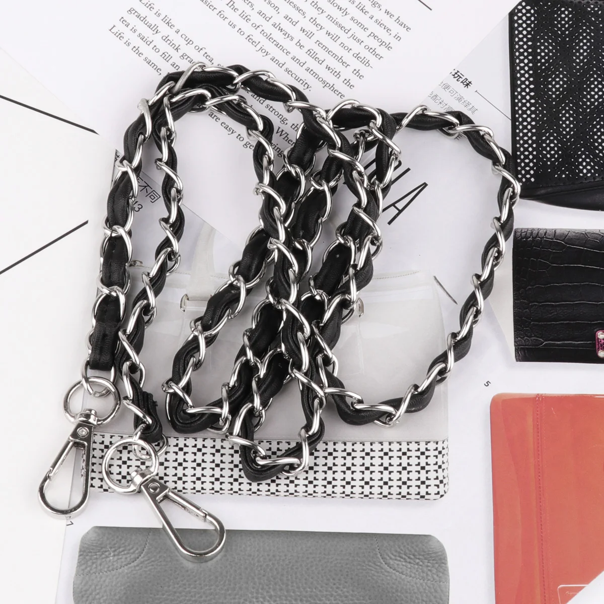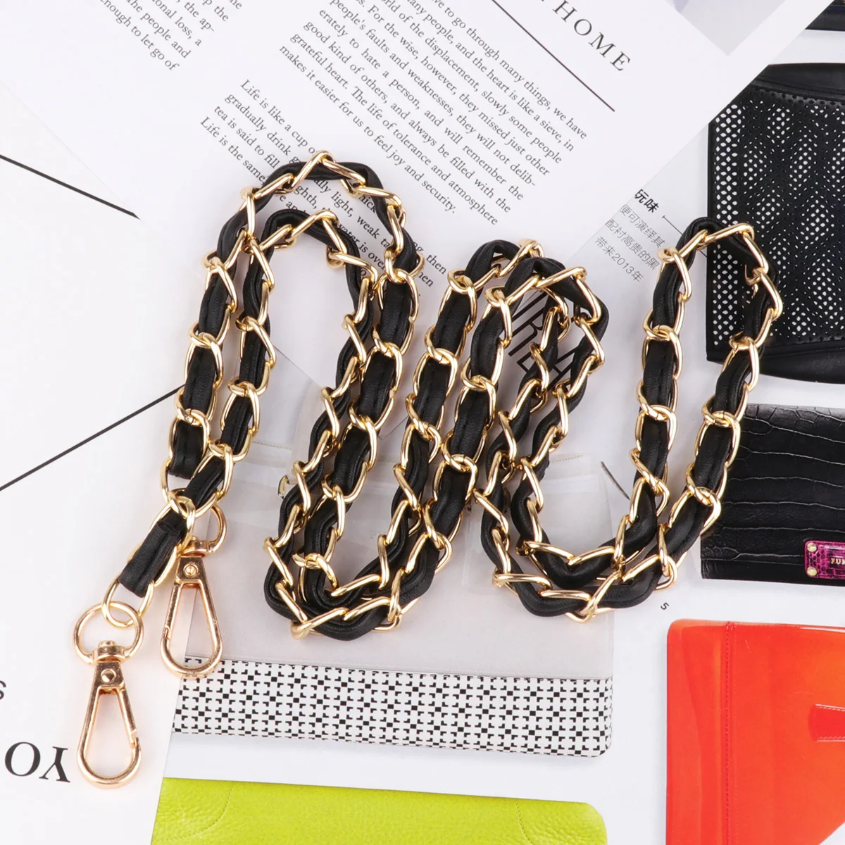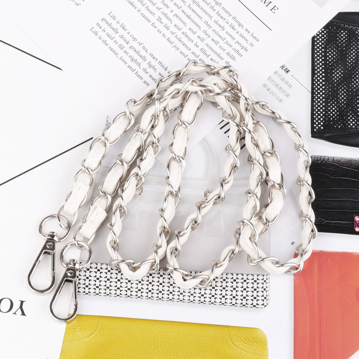 2022 Long 120cm Metal Purse Chain Strap Handle Replacement Metal with PU Leather Bag Chain Strap For Handbag Shoulder Bag
