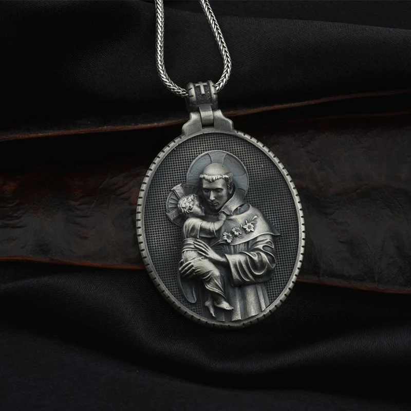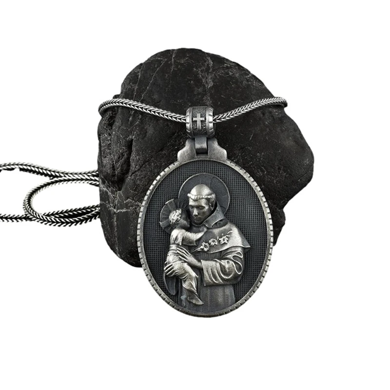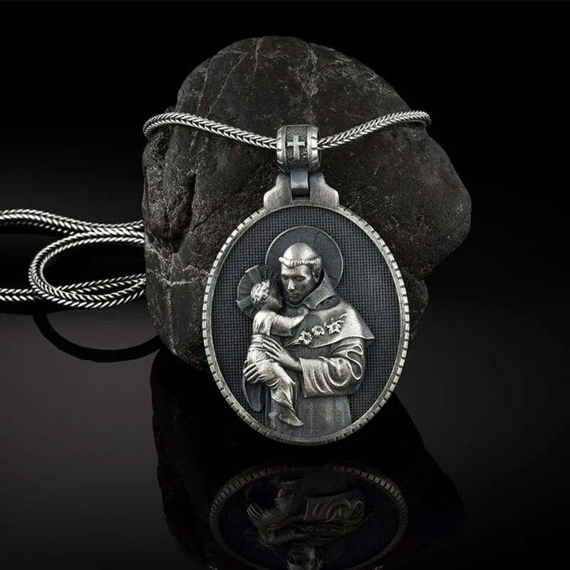 2022 Man necklace Catholic Saint Anthony Men's Pendant Christian Medal Necklace Retro Amulet Jewelry