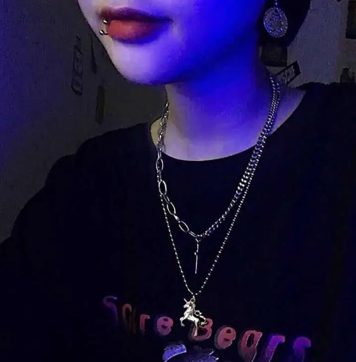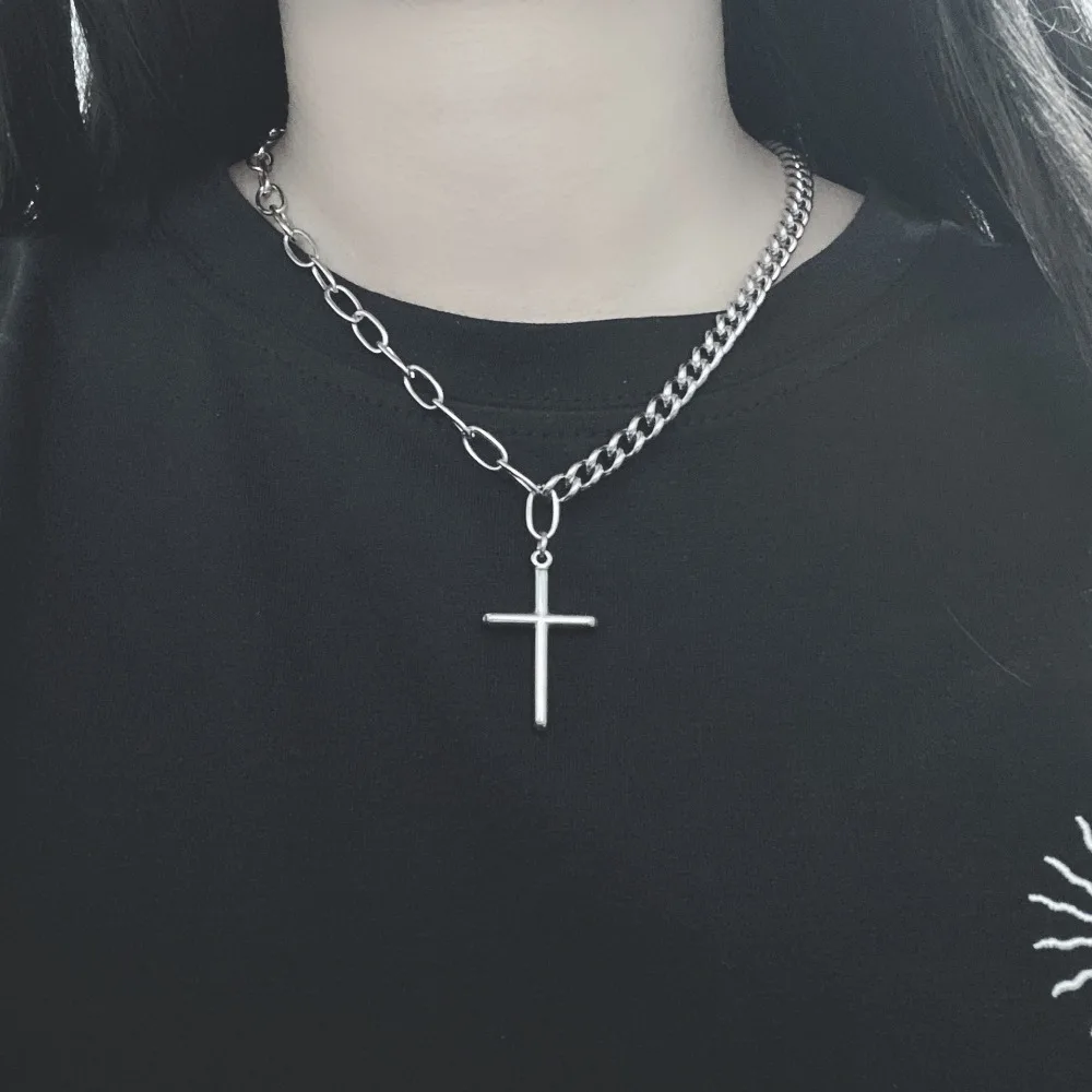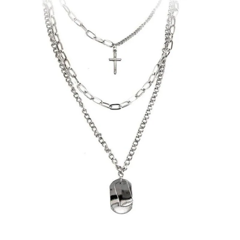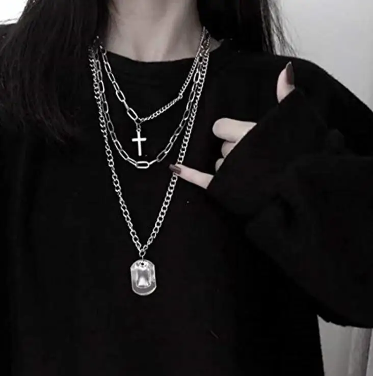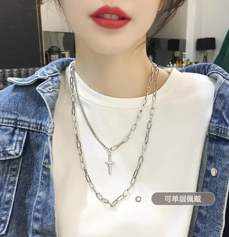 2022 Personality Hip Hop Multilayer Necklace Metal Cross Pendant Silver Color Chain Necklace for Women Men Unisex Jewelry чокер