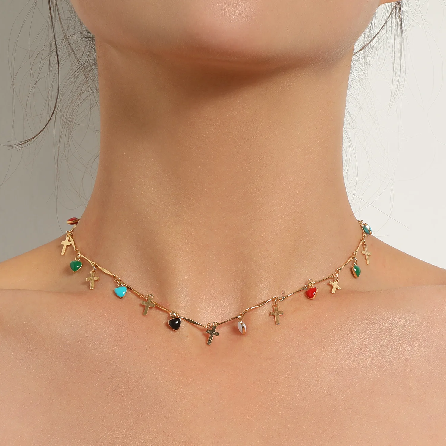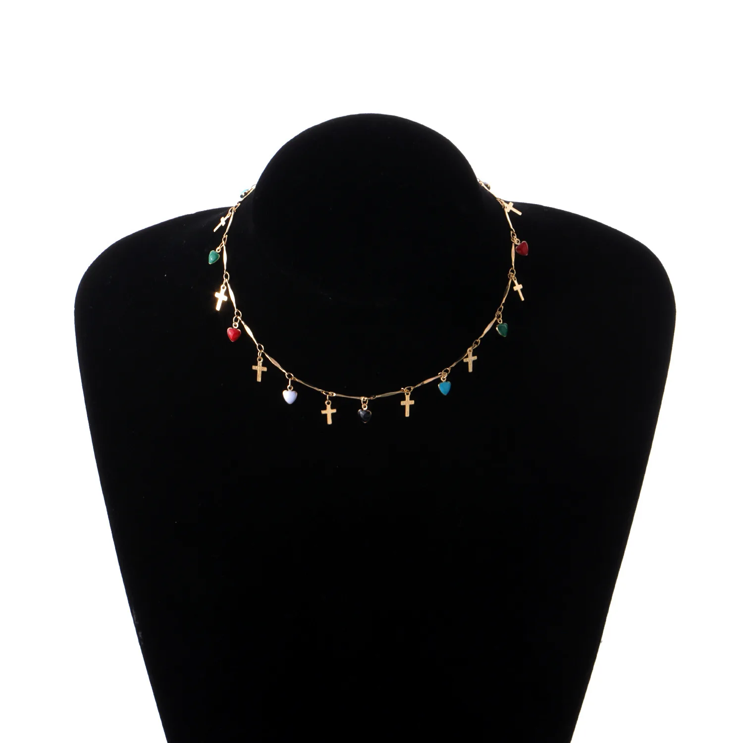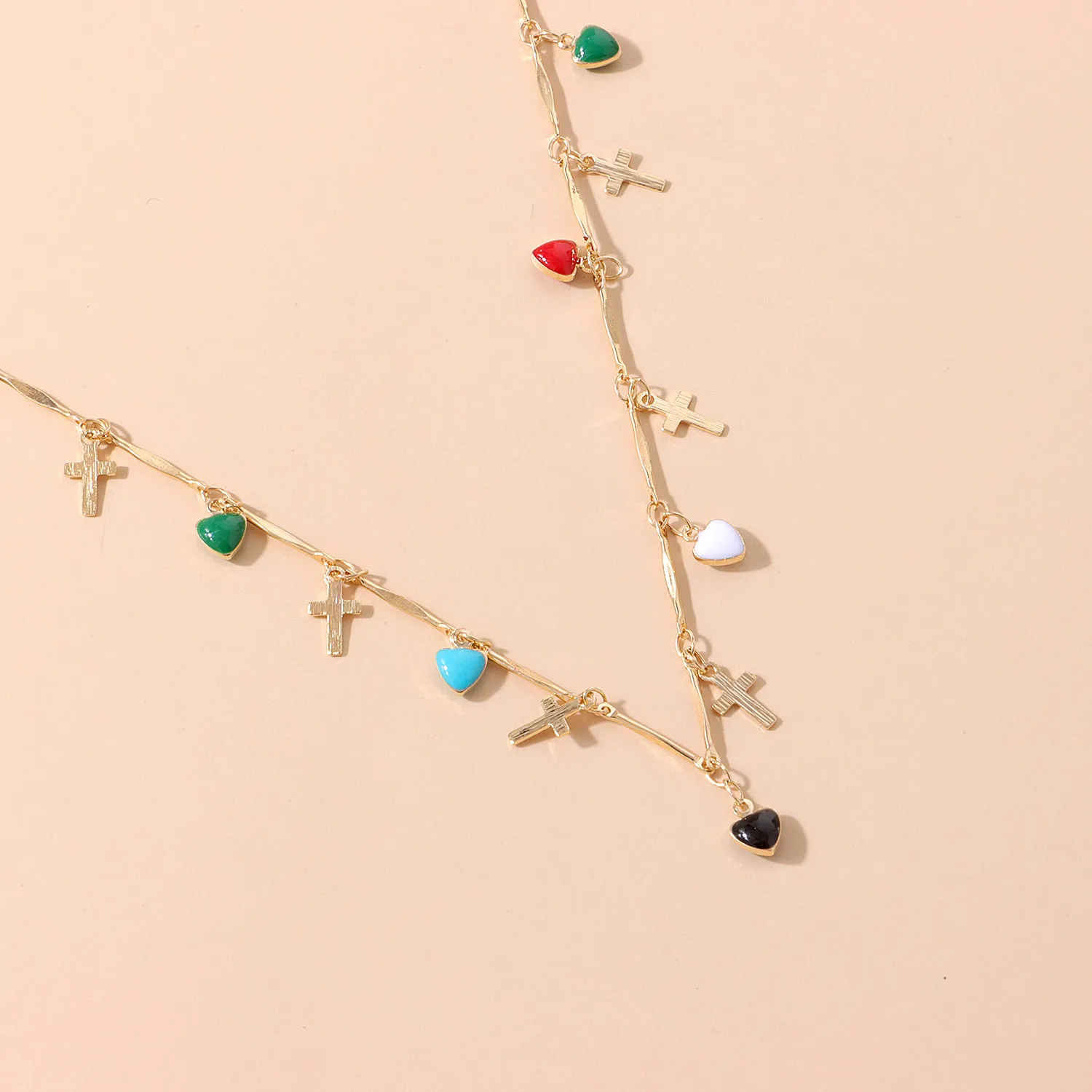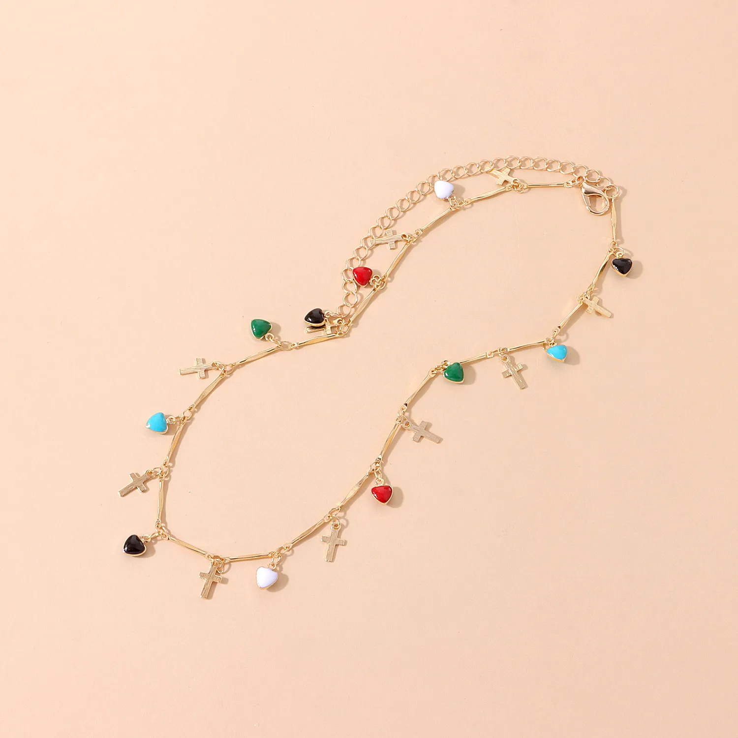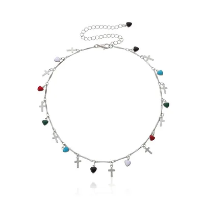 2022 Trend Bohemia Drip Glaze Love Cross Pendant Necklace Simple Vintange Creative Personality Choker Neck For Women