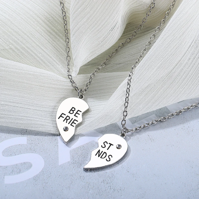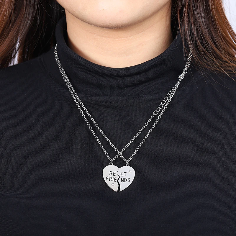 2pc Heart-Shaped Stitching Friend Inlaid Colored Rhinestone Choker Carving Female Jewelry Direct Sales 2022