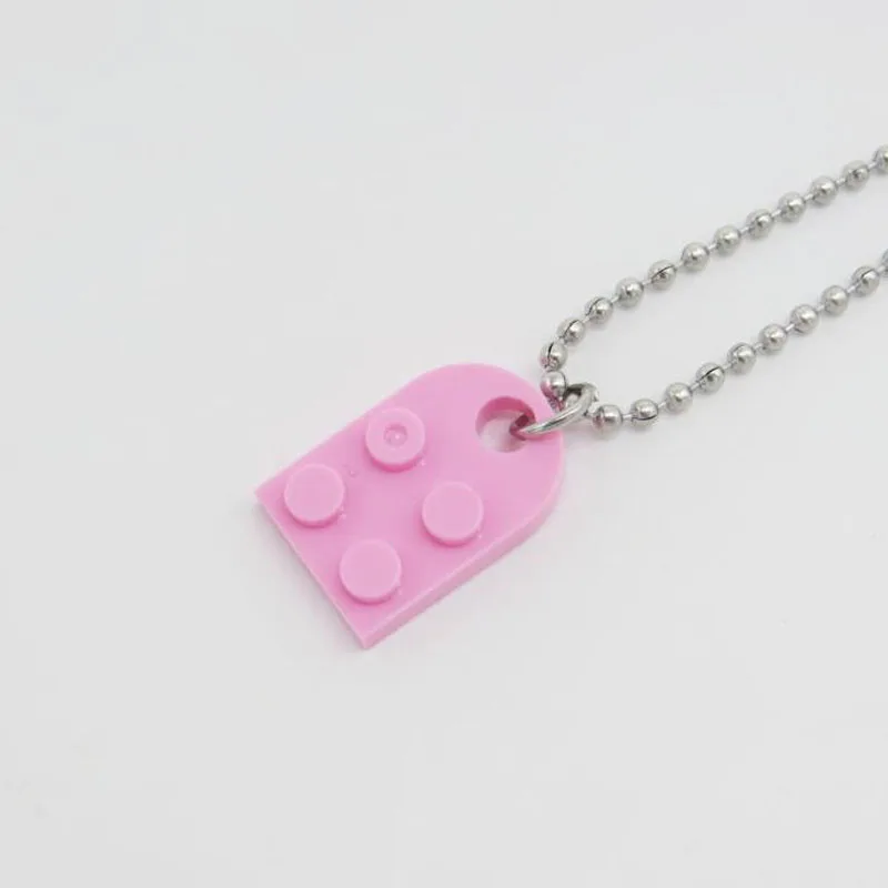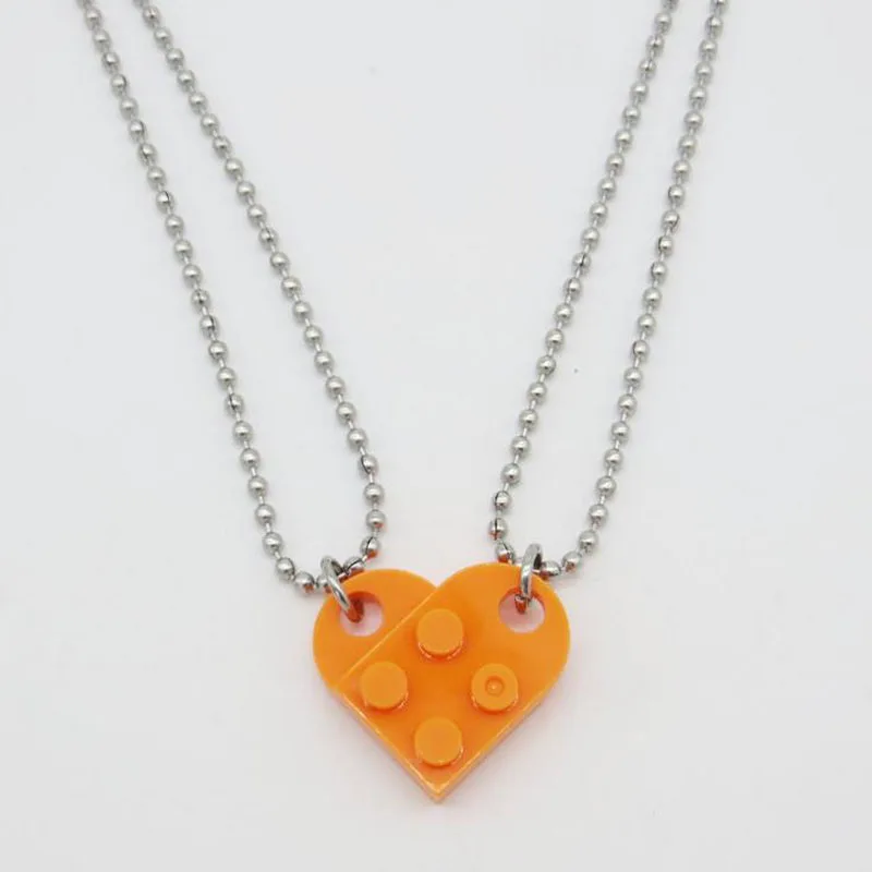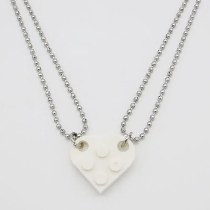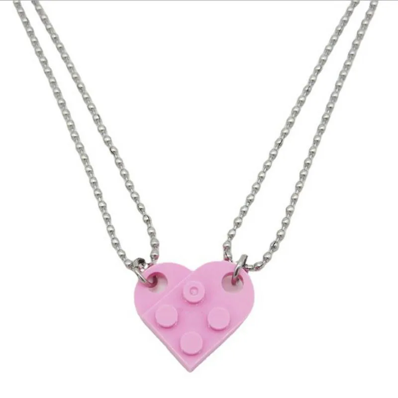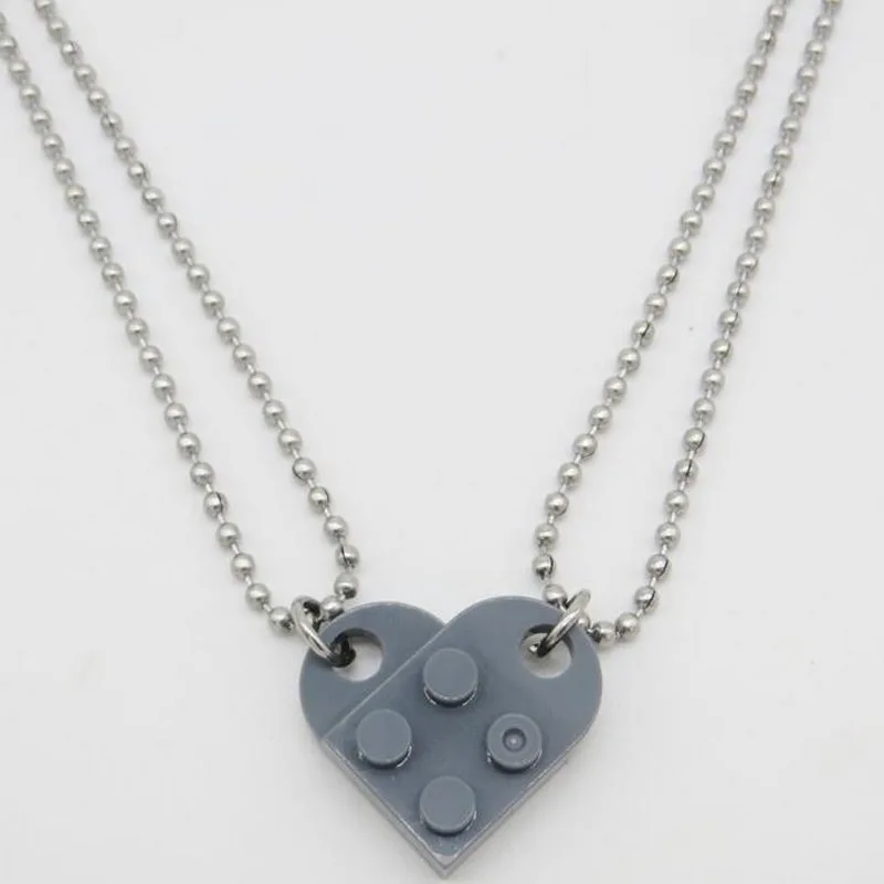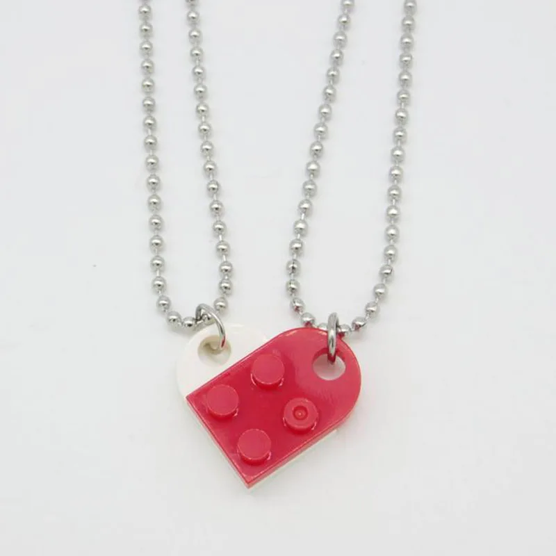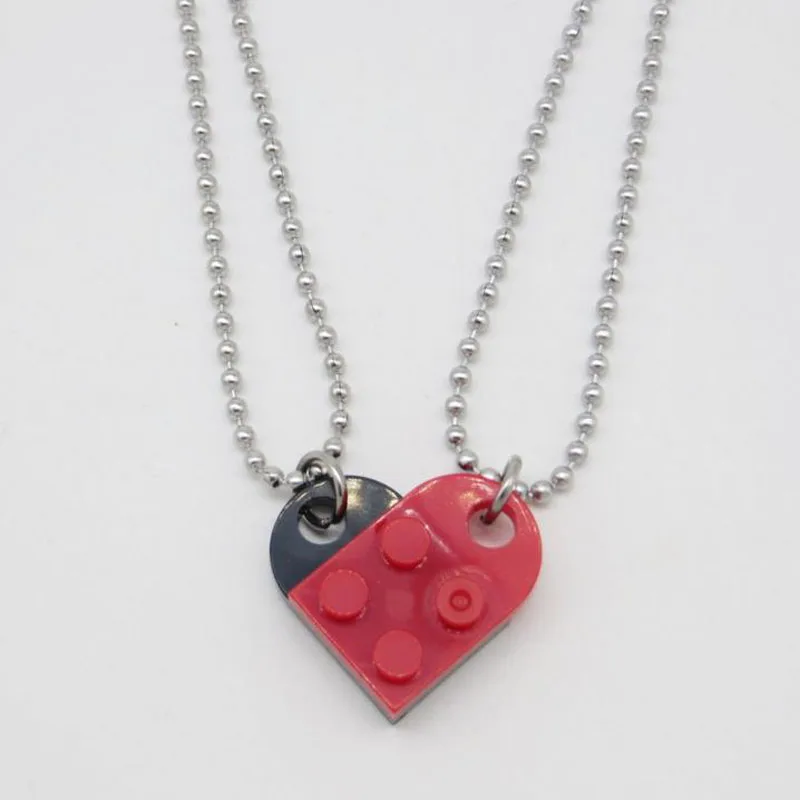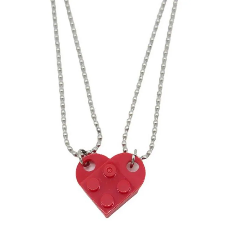 2PCS Beads Necklace Building Brick Heart Necklace for Women Men Lego Elements Couple Valentine's Gifts Friends Necklaces