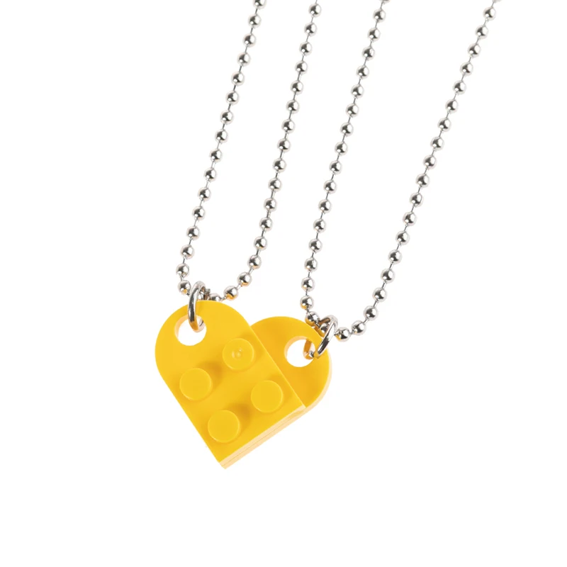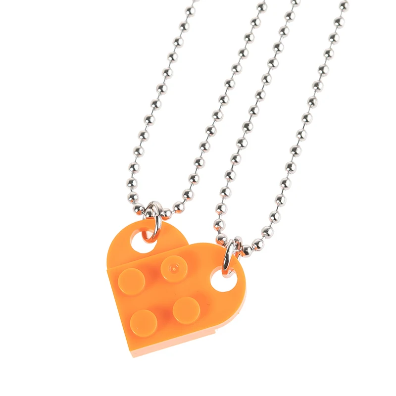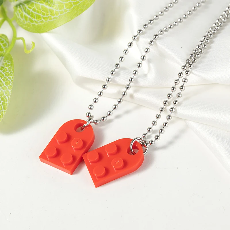 2Pcs Cute Love Heart Brick Pendant Necklace For Couples Friendship Women Men Girl Boy Lego Elements Valentine's Day Jewelry Gift