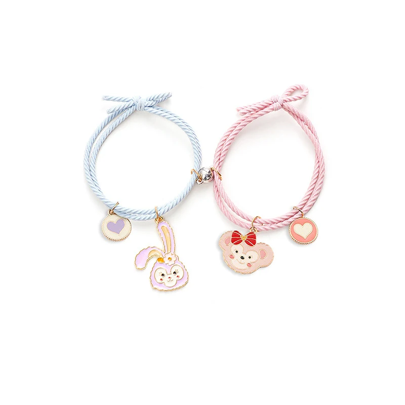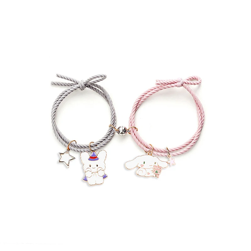 2pcs/ pair of Cute Cartoon Couple Bracelet Magnet Ball Hand Men and Women Gift Friendship Charms Elastic Rope Jewelry