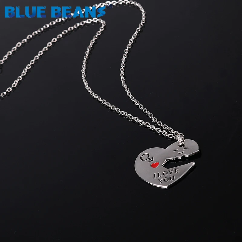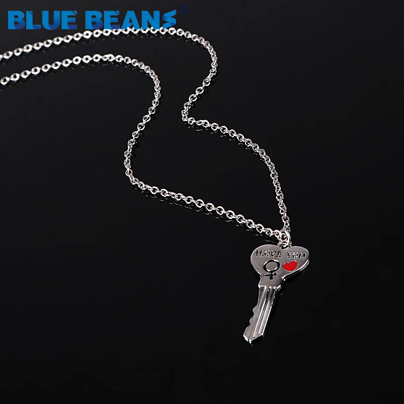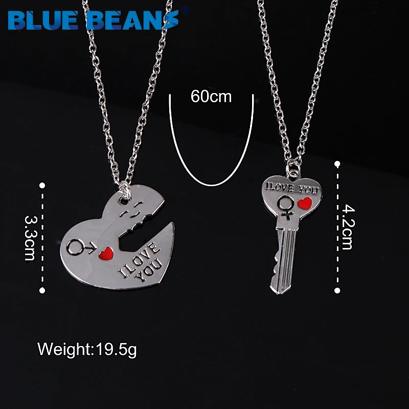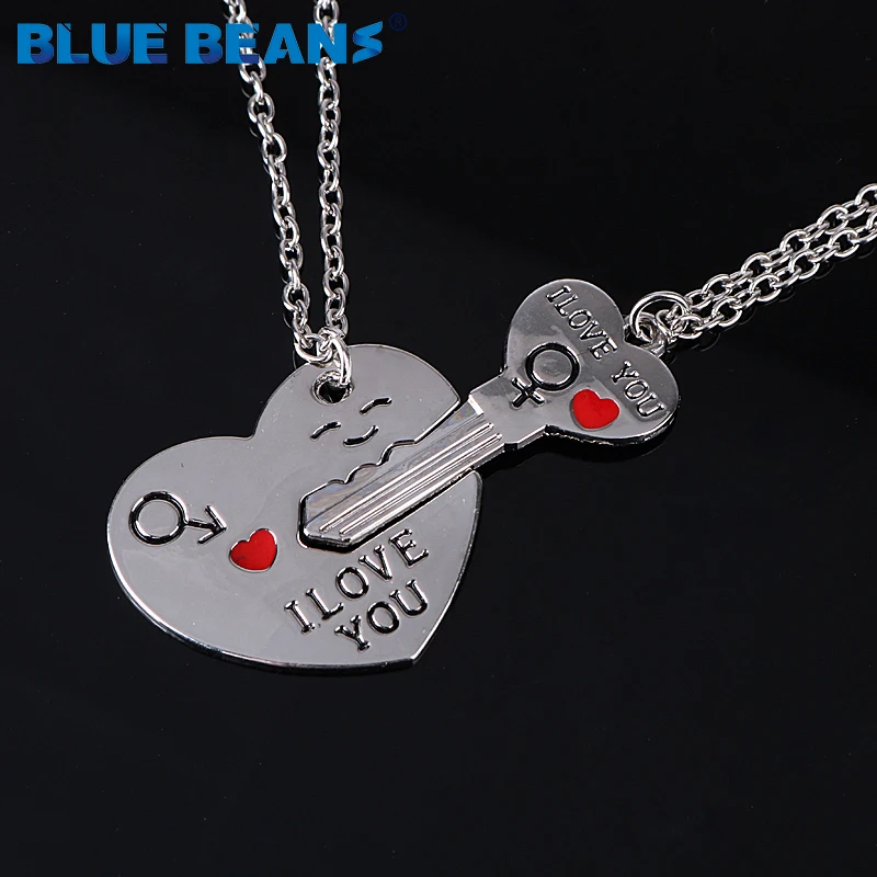 2Pcs/Set Romantic Couple Necklaces Engrave I Love You Love Heart&Key chains pendants Silver Color Chain Collares jewerly Selling