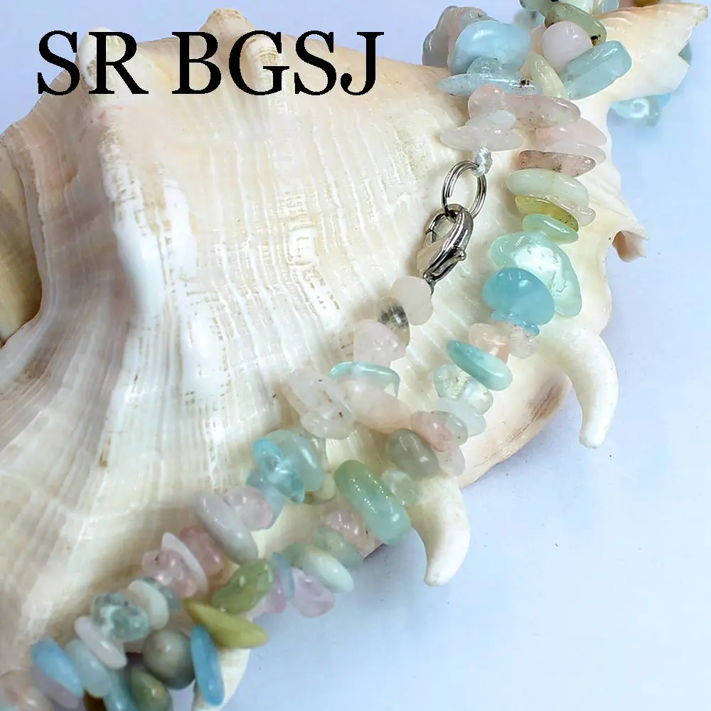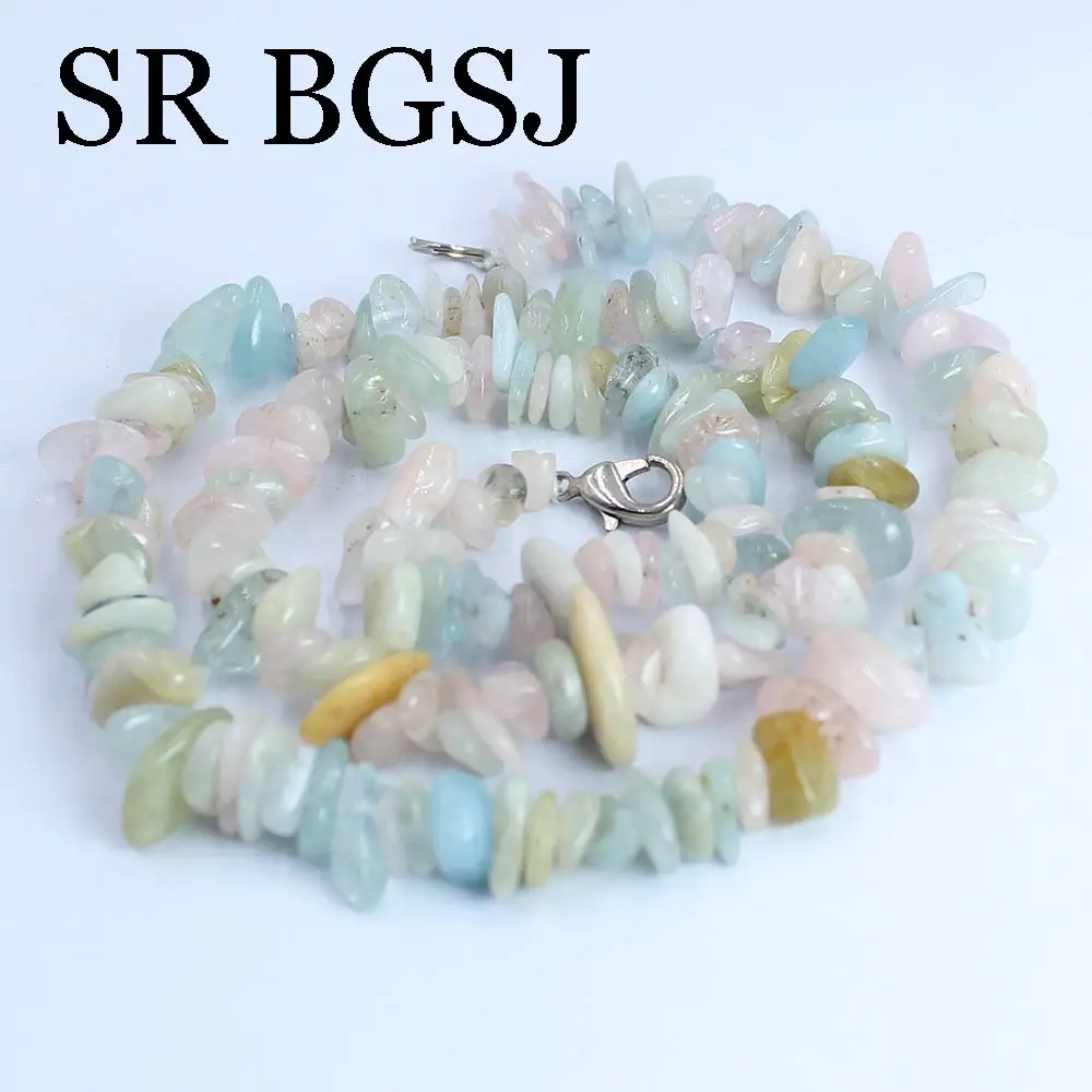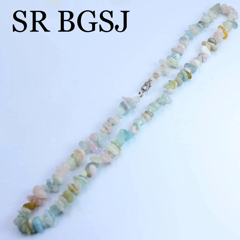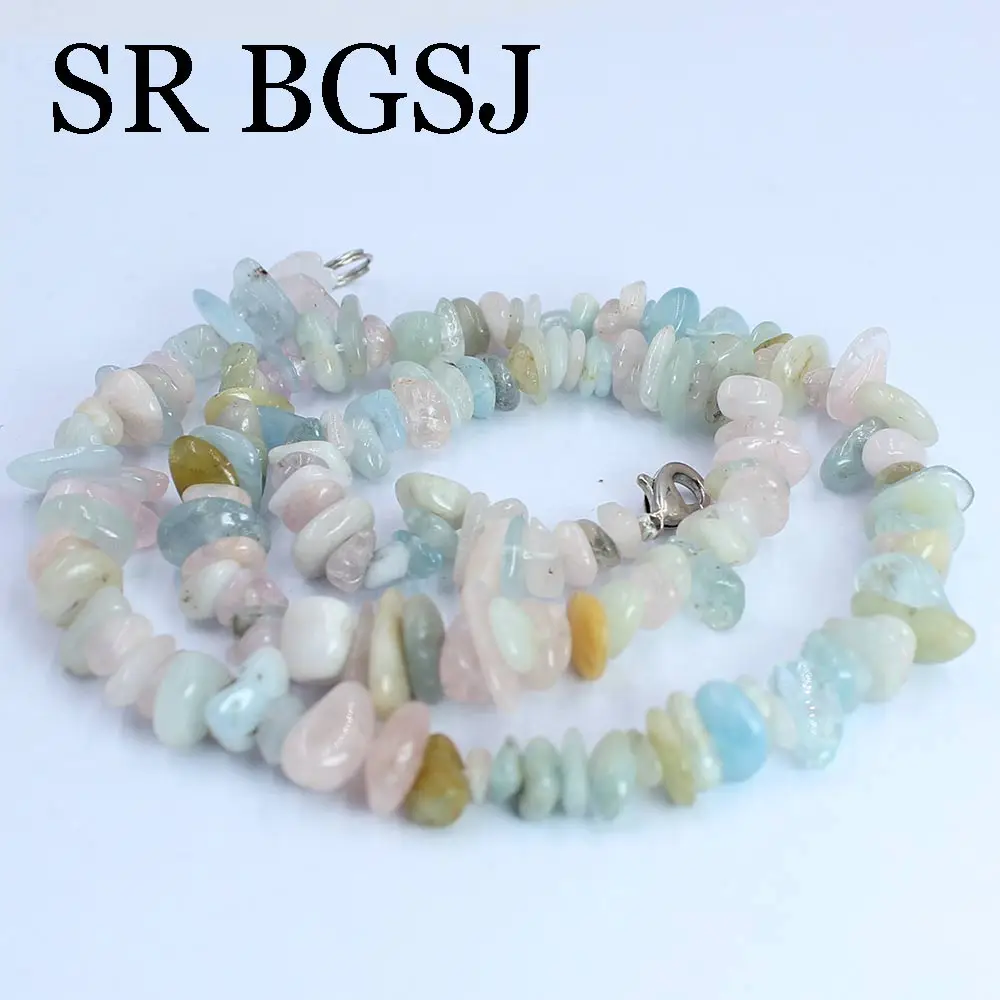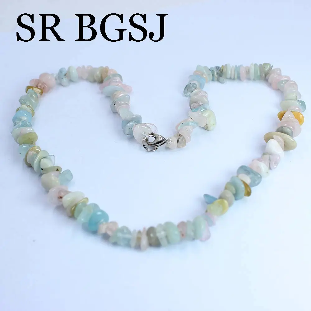 6-8mm Natural Stone Morganite Gems Chips Stone For Women Chokers Necklace 18inch