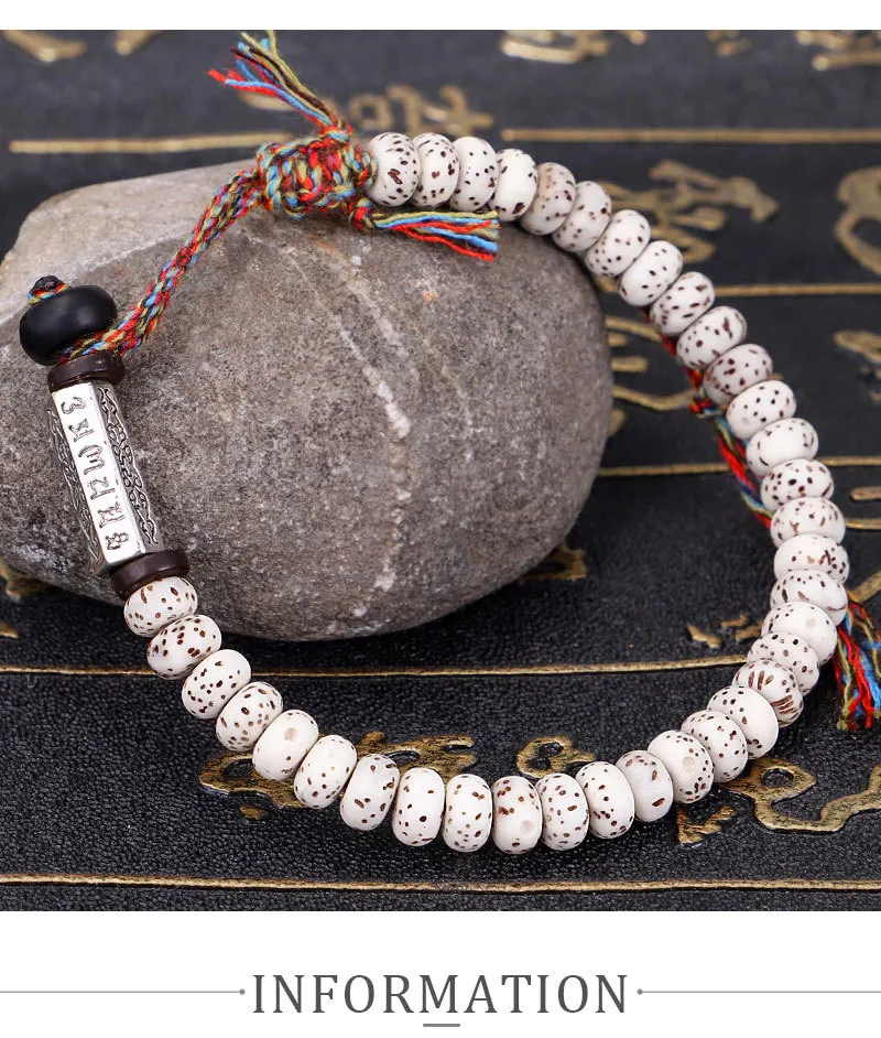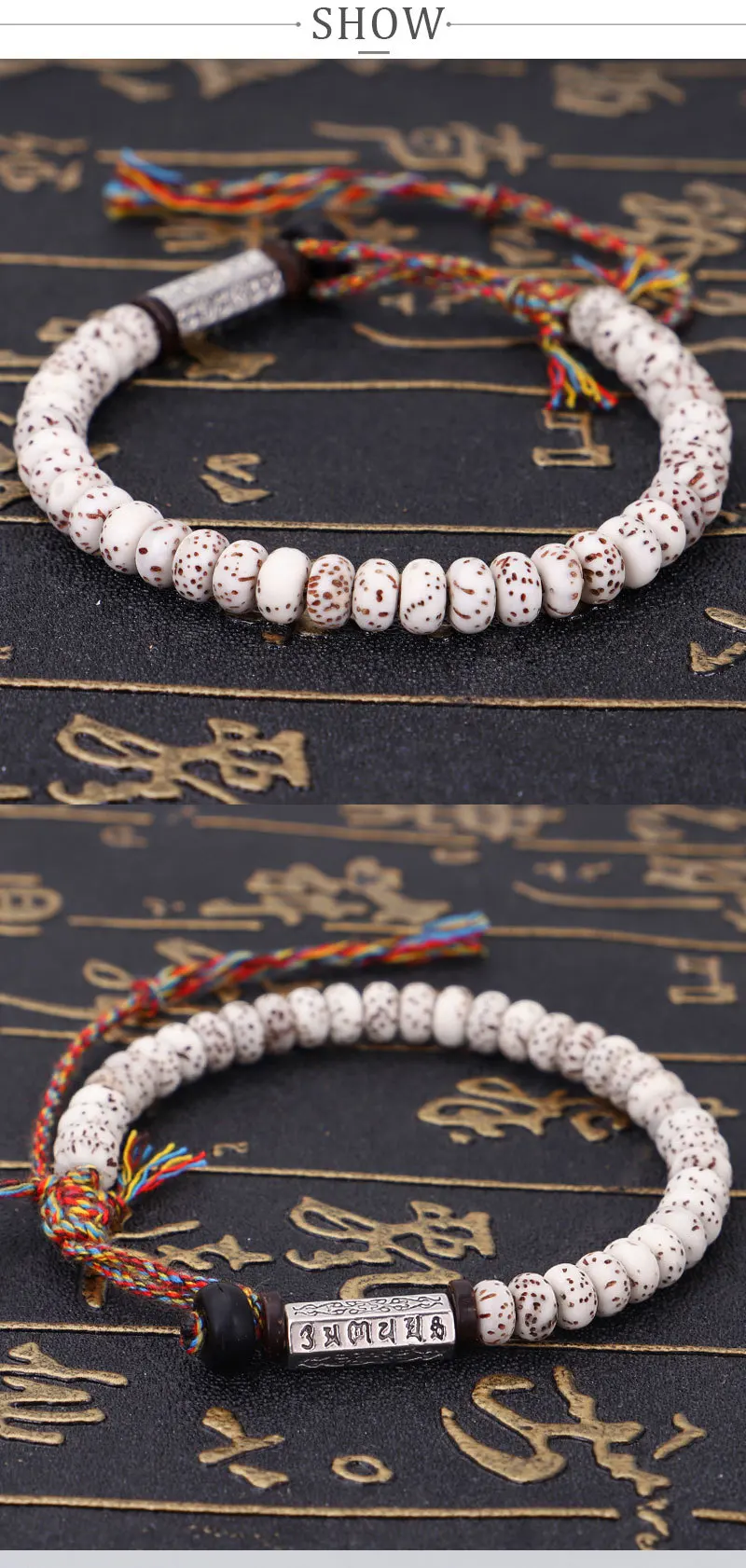Creative Bodhi Bracelet Tibetan Buddhist Braided Cotton Thread Carved Amulet Handmade Bracelet for Women Men Chakra Wristband