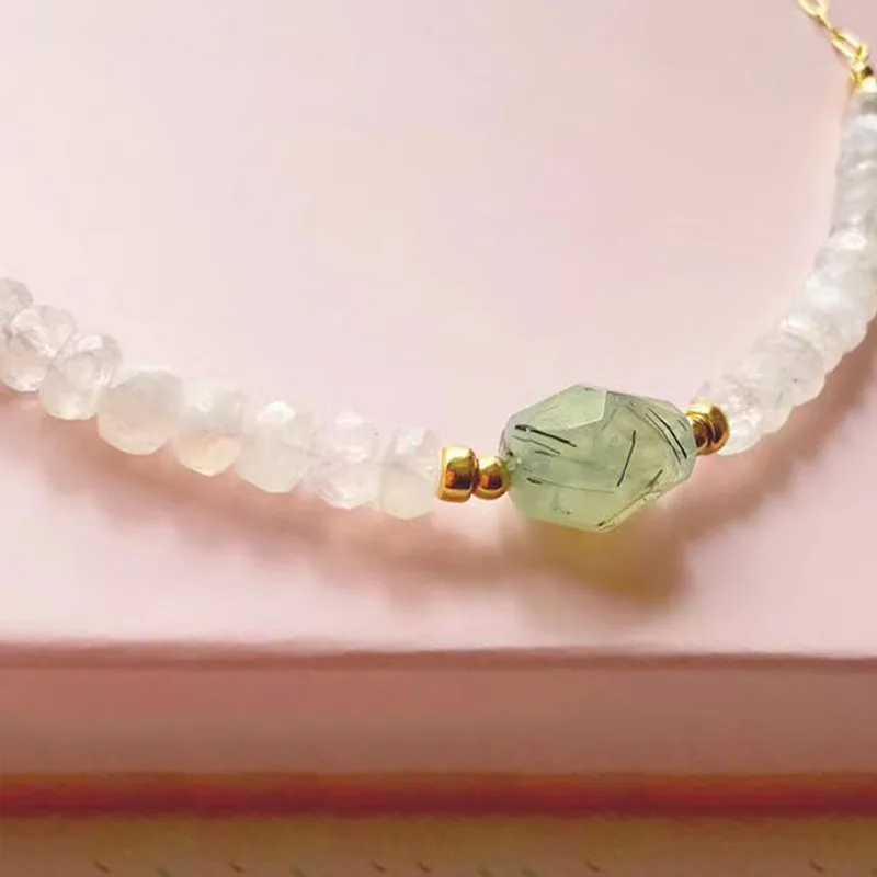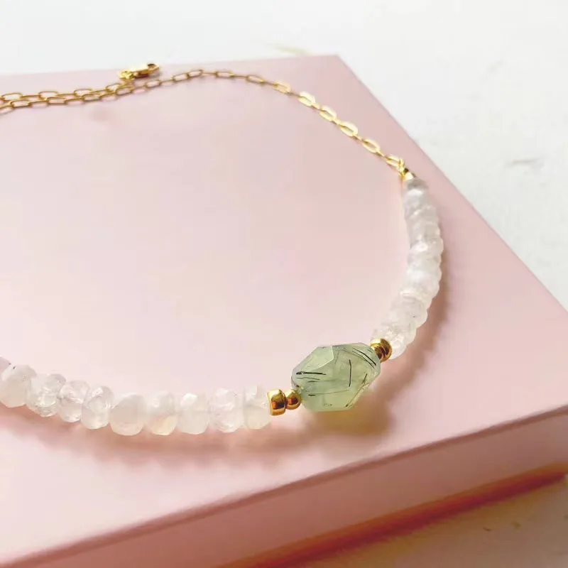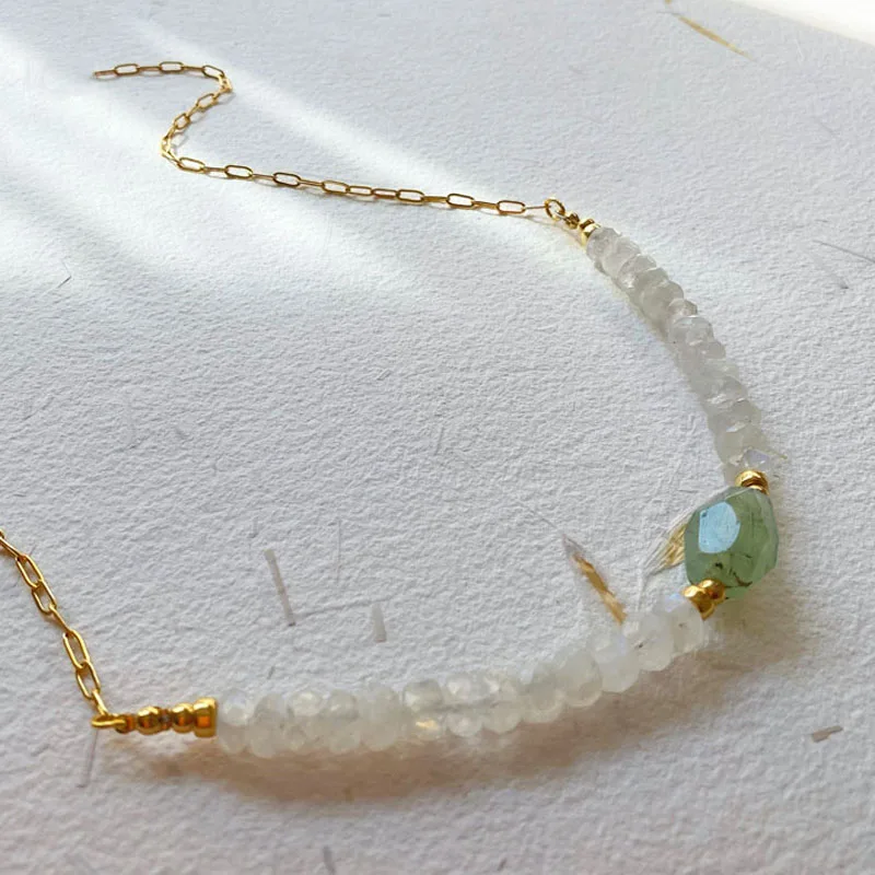 Creative Design Faceted Crushed Stone Necklace Punk Gold-color Stainless Steel Chain Collar For Women Man Light Green Stone Chok