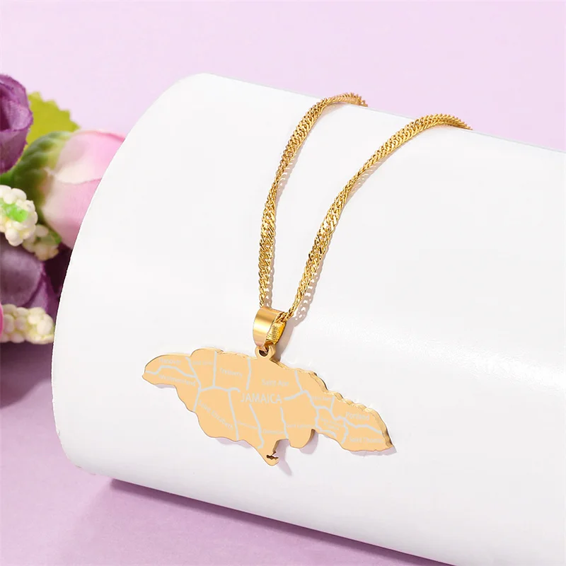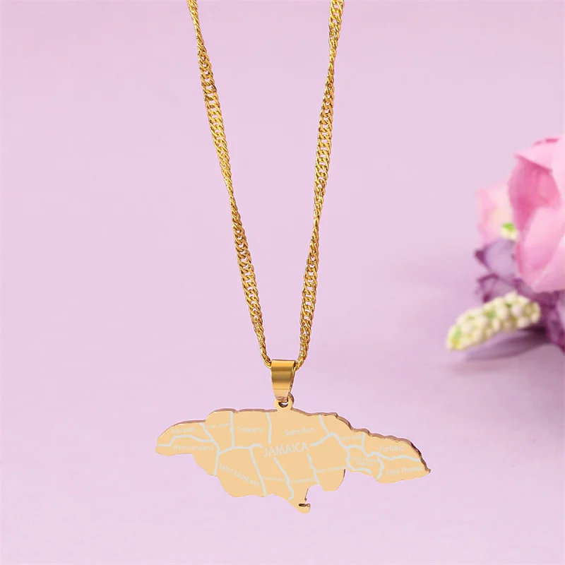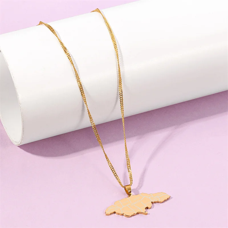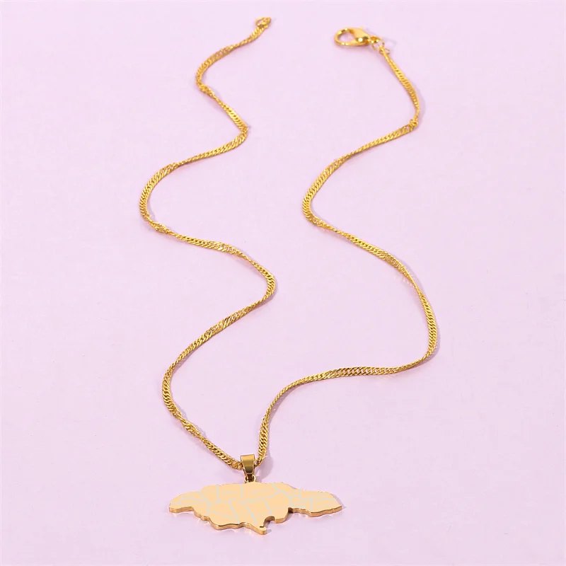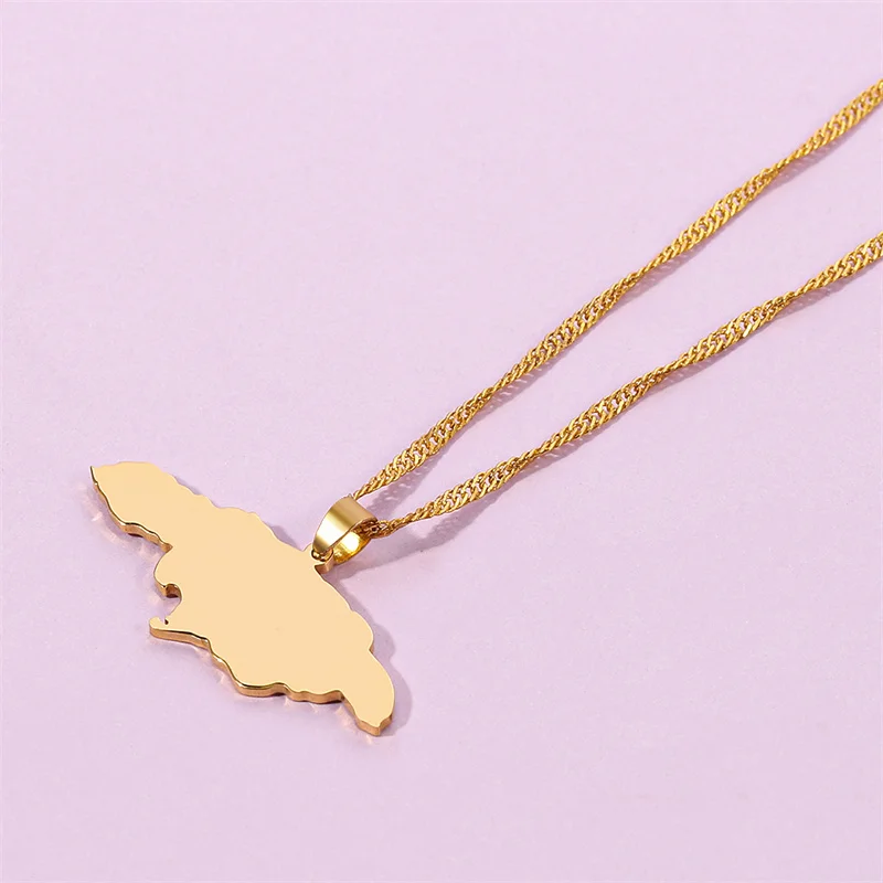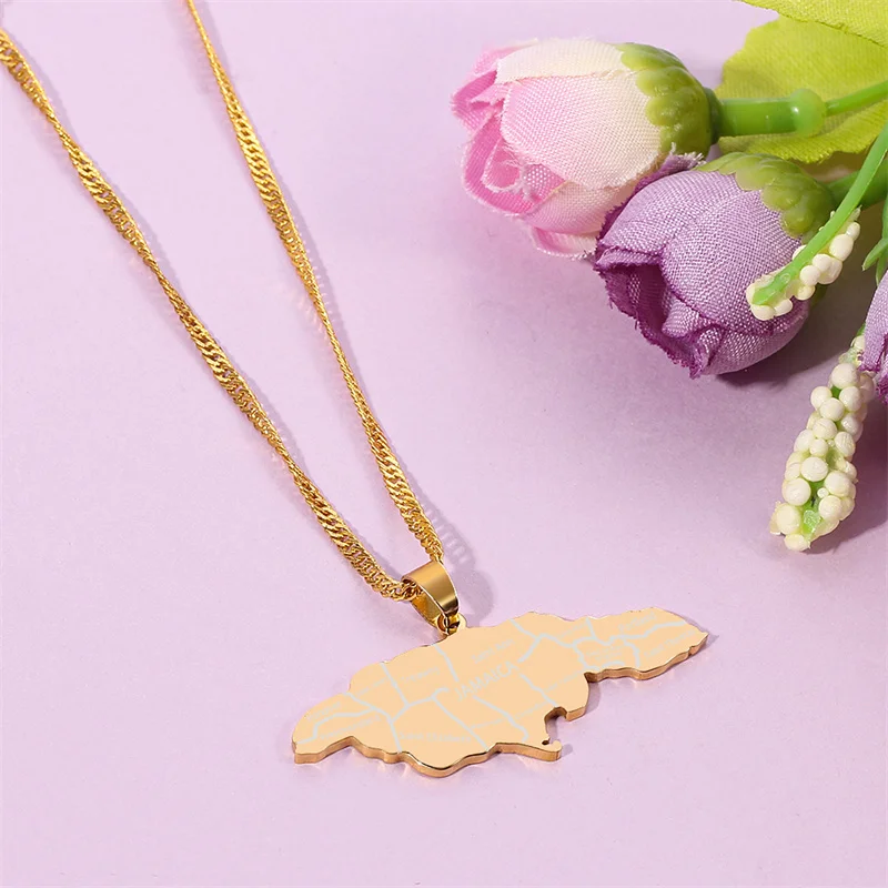 Creative Golden Jamaica Map Pendant Necklace Jamaica Flag Small Jewelry Jamaican Men Women Trendy Jewelry Jewelry