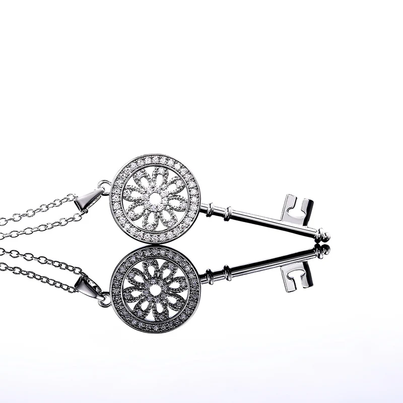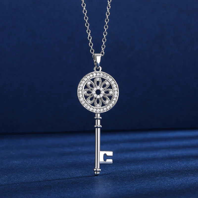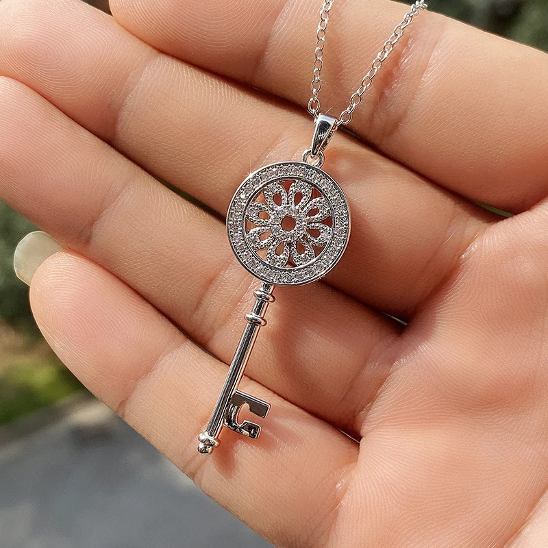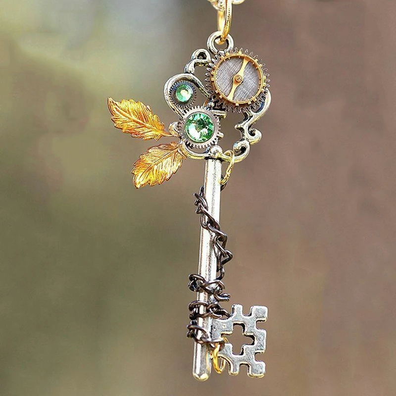 Creative Multicolor Mechanical Key Pendant Necklaces For Women And Men Green CZ Stone Inlay Punk Jewelry Party Gifts