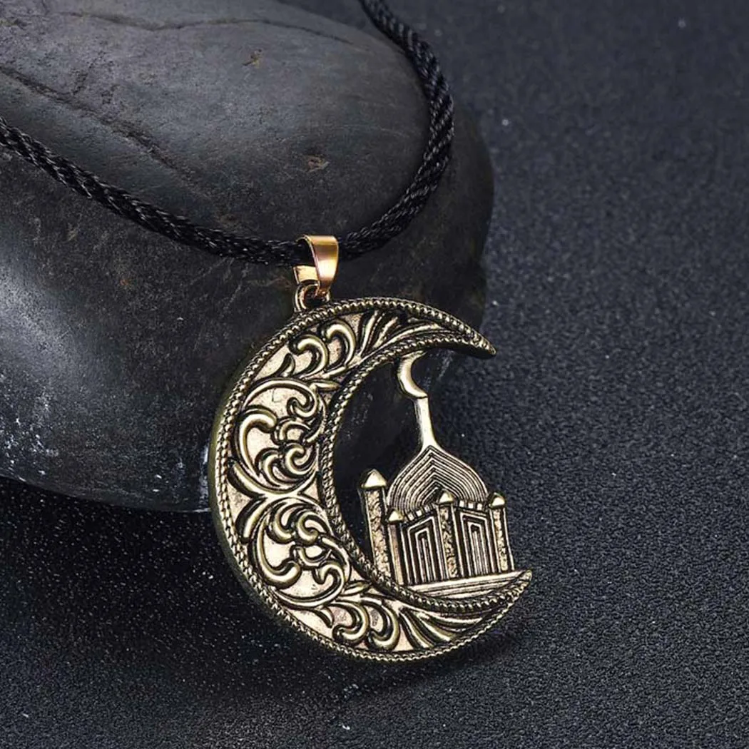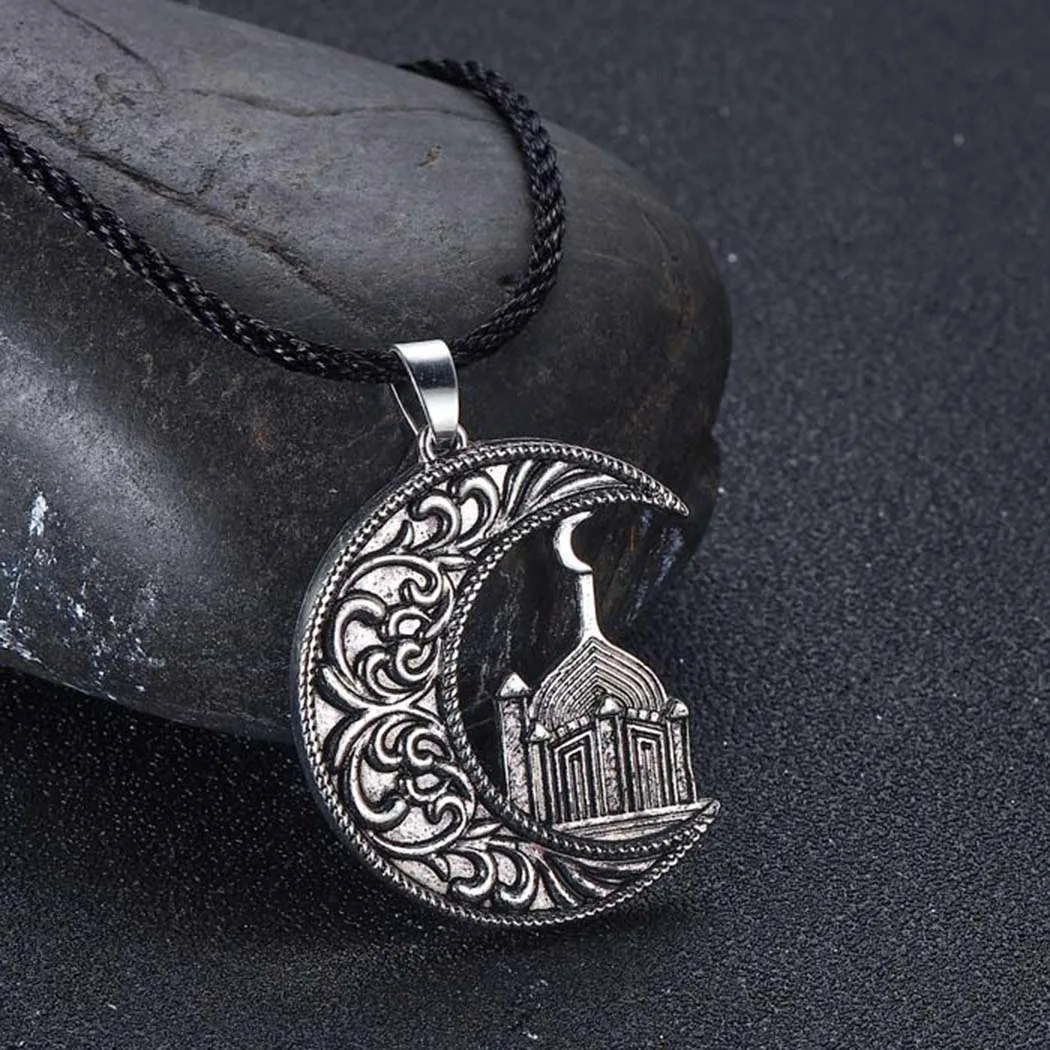 Crescent Moon And Mosque Islamic Pendant Necklace For Women Men Turkish Religious Jewelry Muslim Necklace Gift