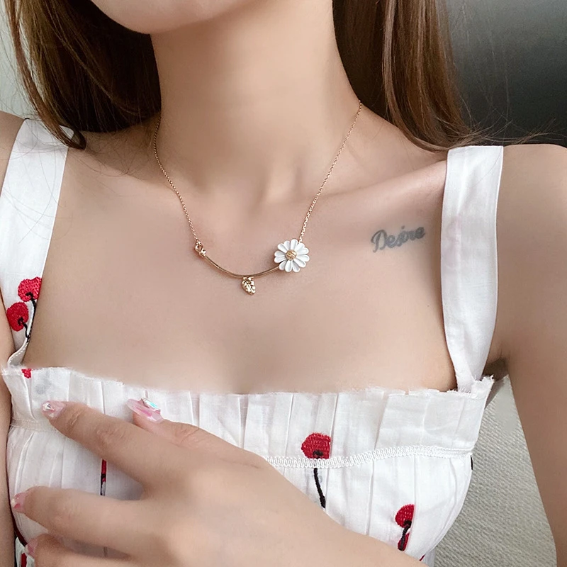 Cute Daisy Jewelry Summer Lady Women Pendant Necklace Choker Chain Leaf Flower