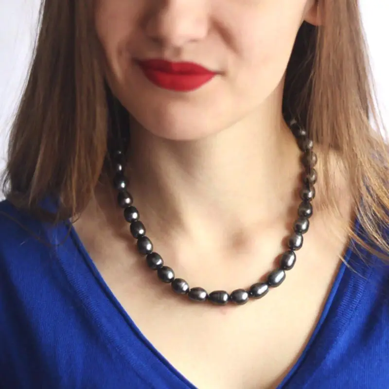 10-11MM Big Rice Pearl Necklace Natural Pearl Choker Necklace Classic Pearl Jewelry