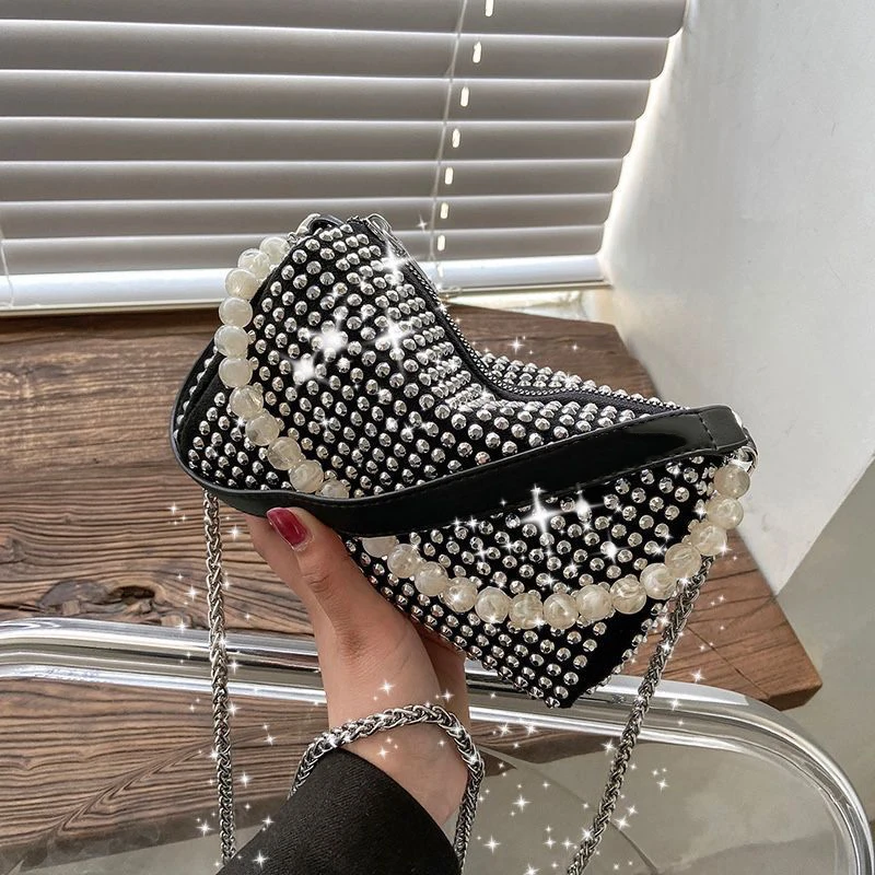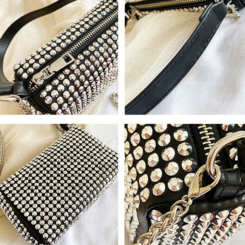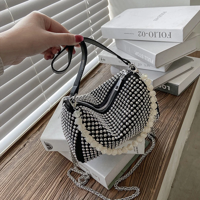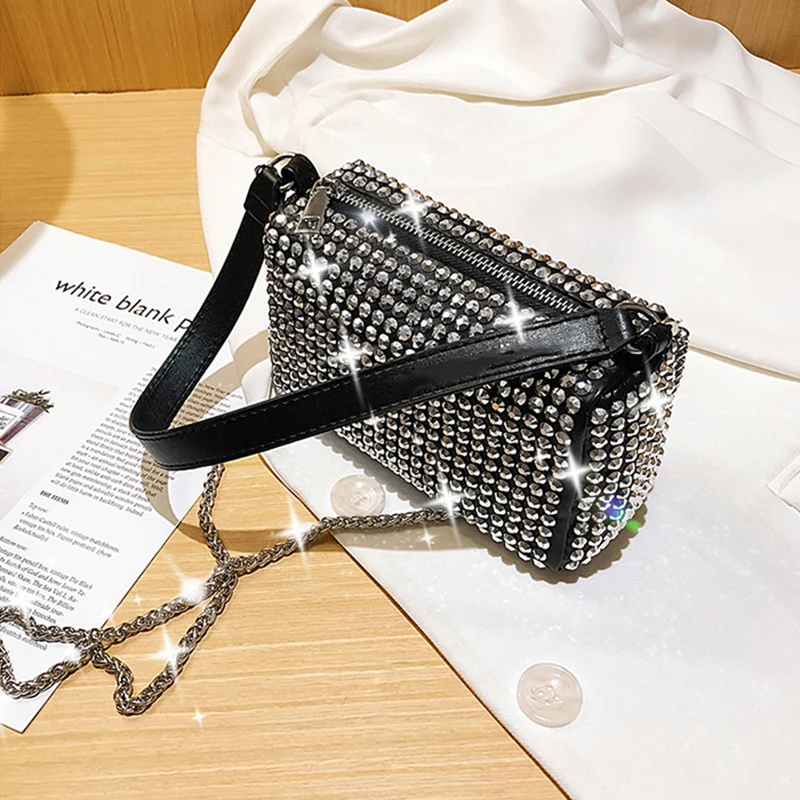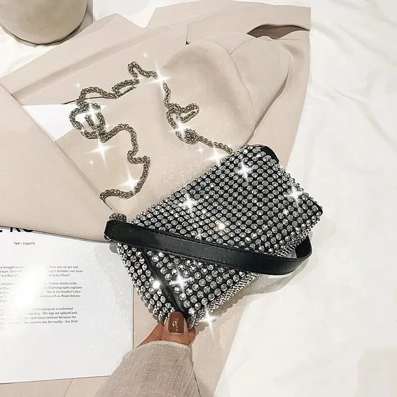 Diamond Crossbody Shoulder Bag Women Small Handbag Clutch Retro Pillow Hobos Bag Lady PU Leather Shiny Party Tote Purse