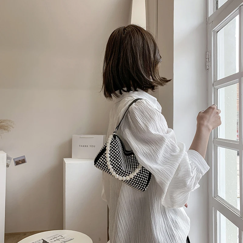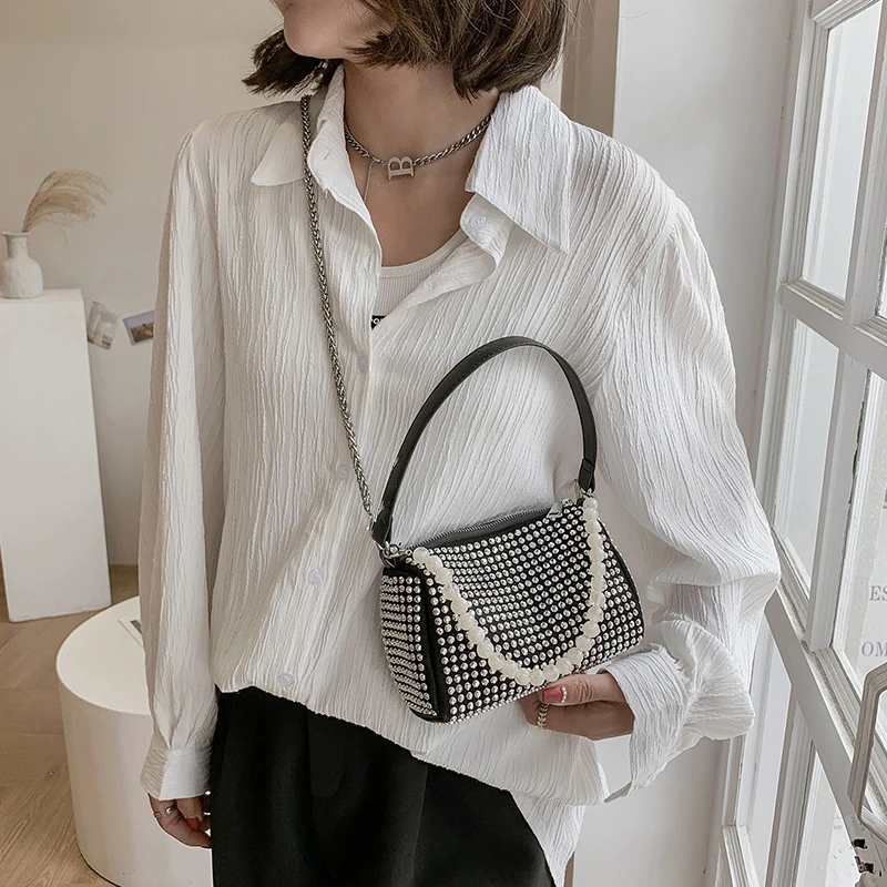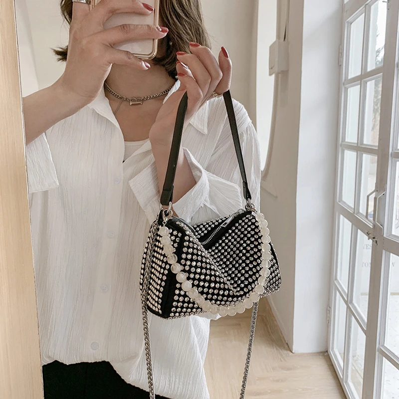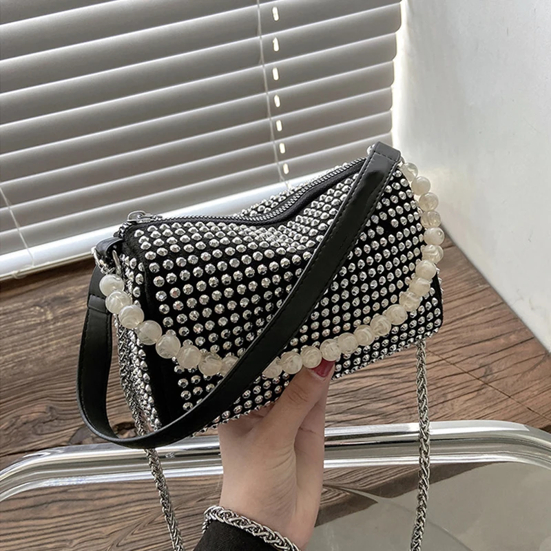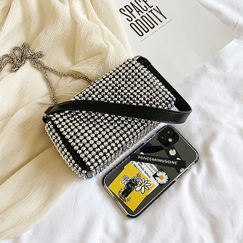 Diamond Crossbody Shoulder Bag Women Small Handbag Clutch Retro Pillow Hobos Bag Lady PU Leather Shiny Party Tote Purse