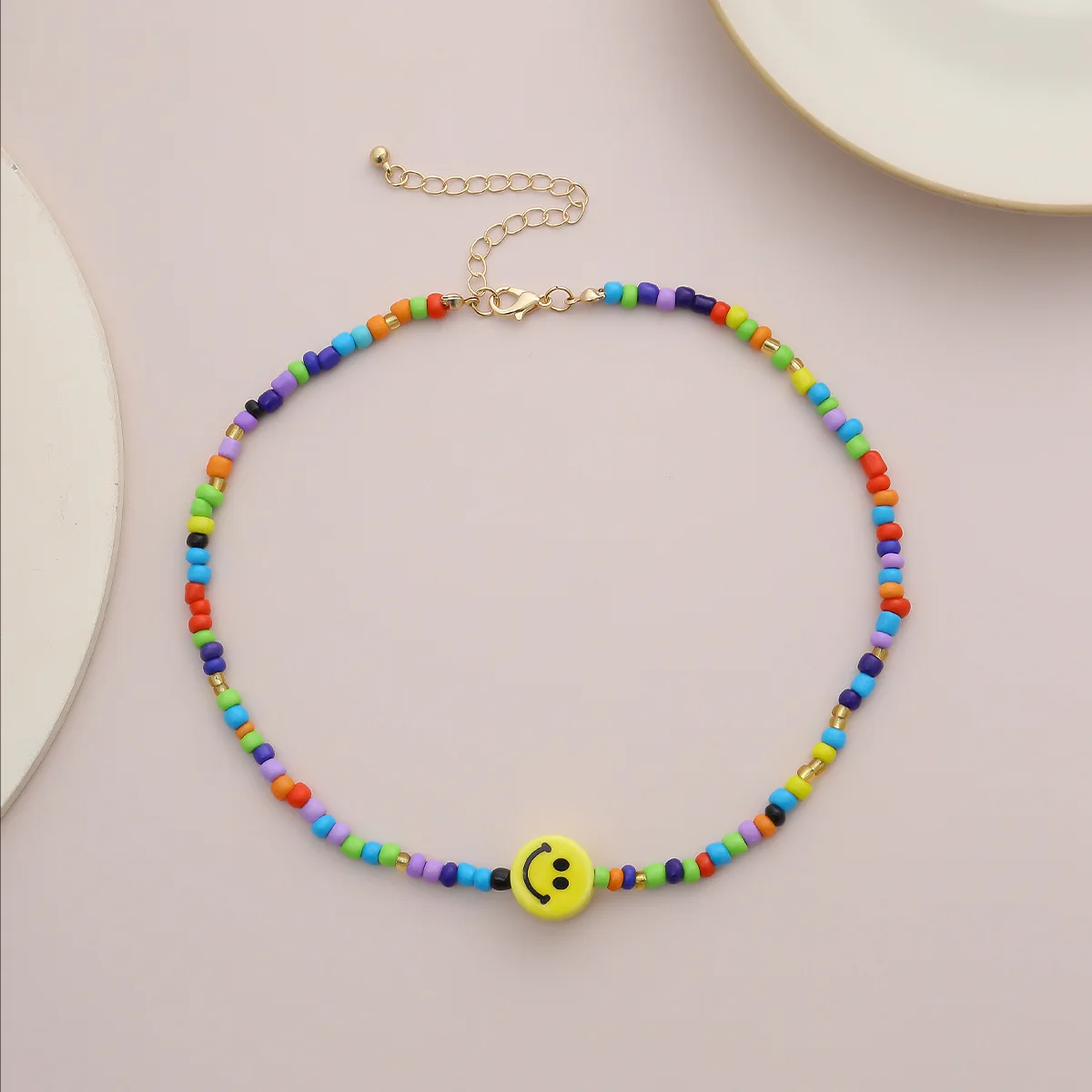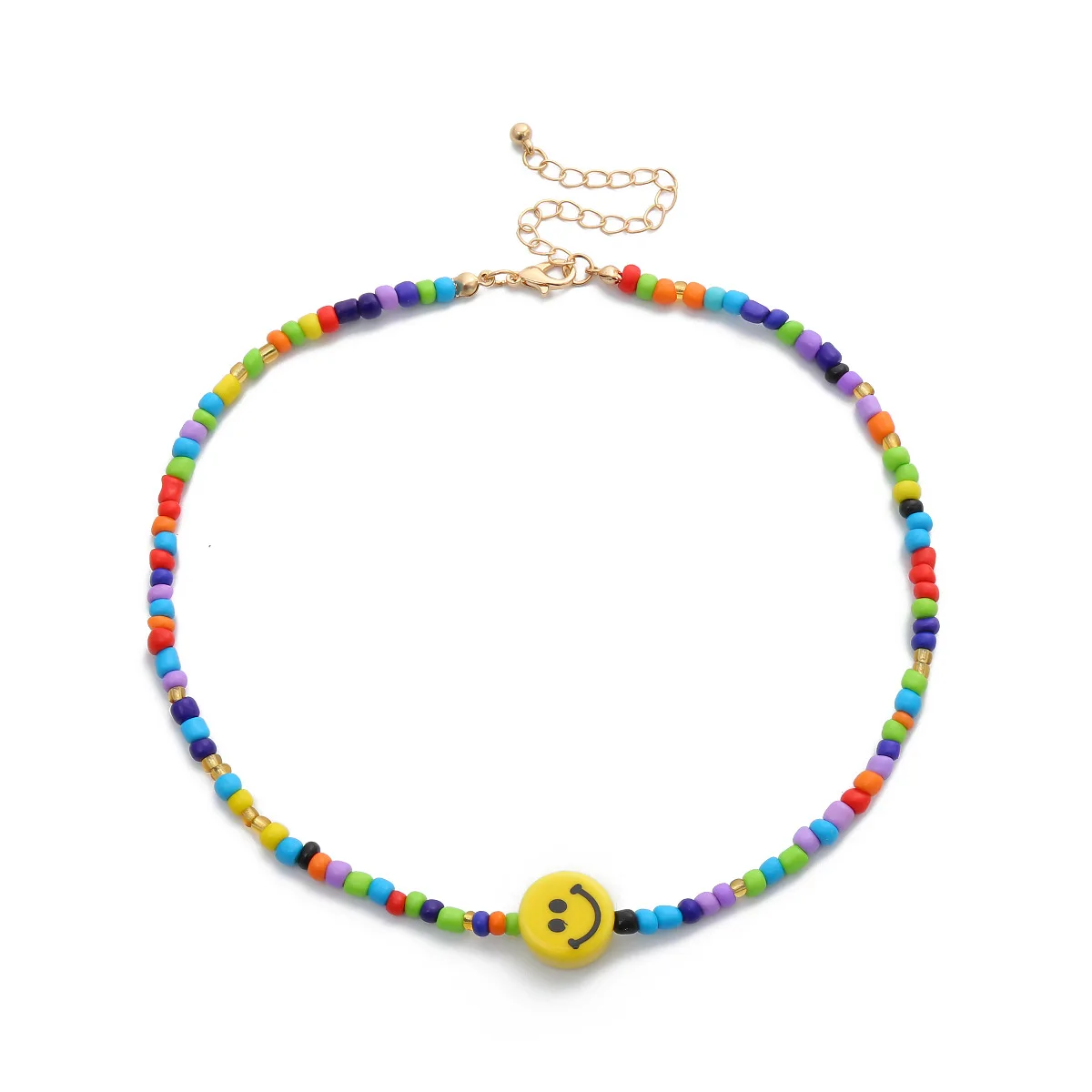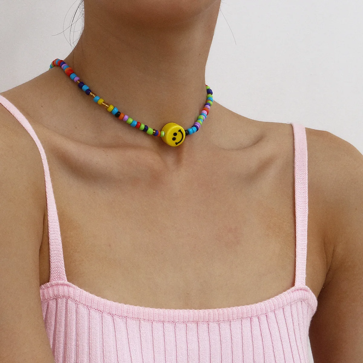 DIEZI Simple Multicolor Acrylic Beads Necklace Women Girls Short Necklace Yellow Smile Face Choker Collares Necklace Jewelry
