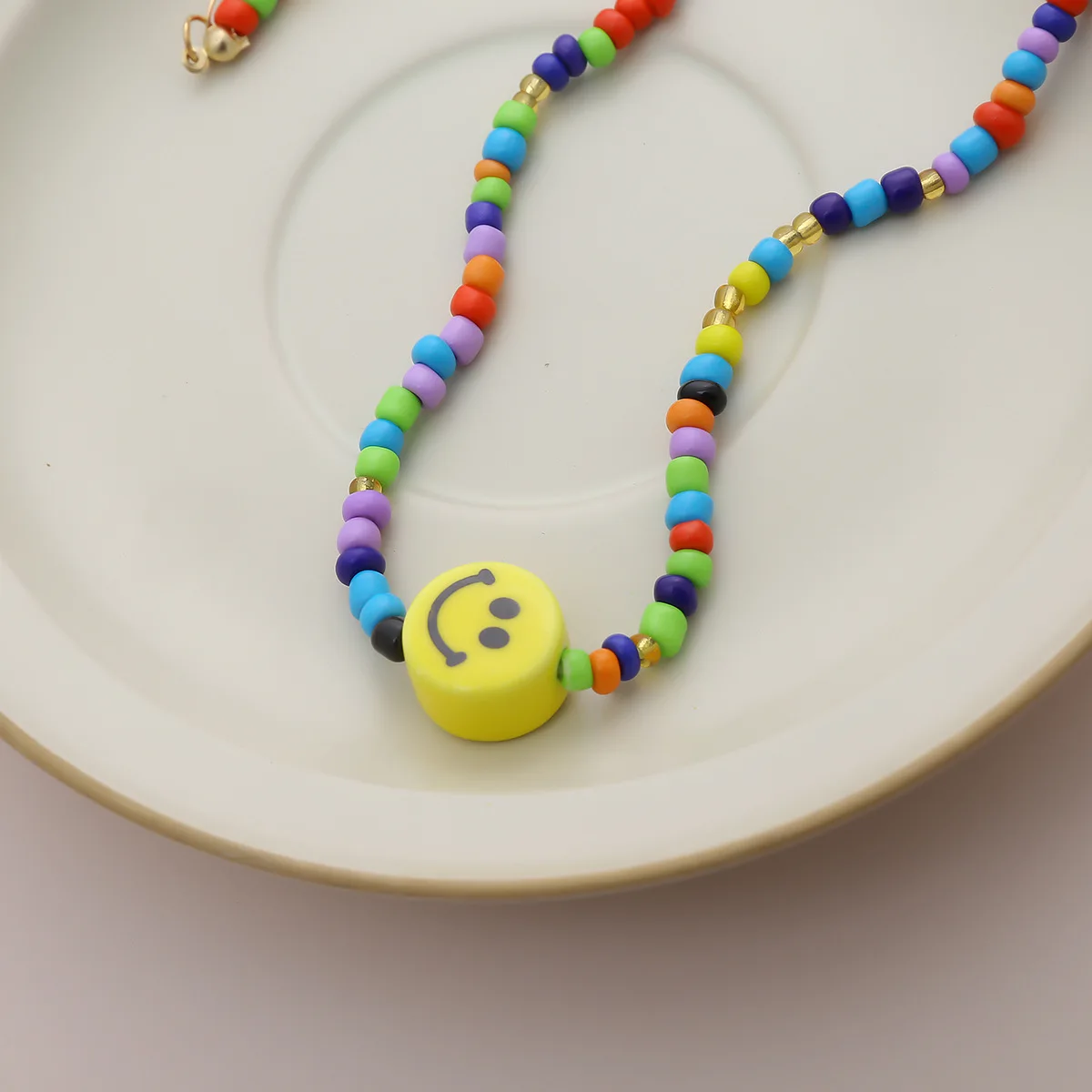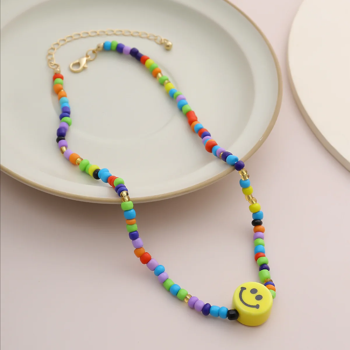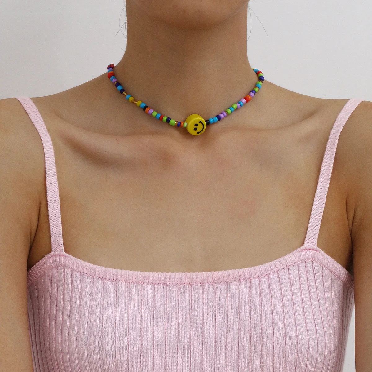 DIEZI Simple Multicolor Acrylic Beads Necklace Women Girls Short Necklace Yellow Smile Face Choker Collares Necklace Jewelry