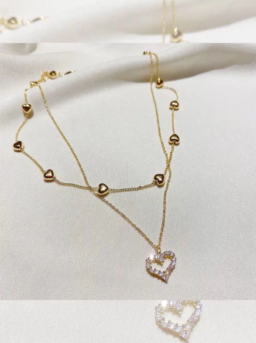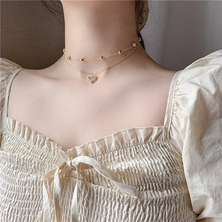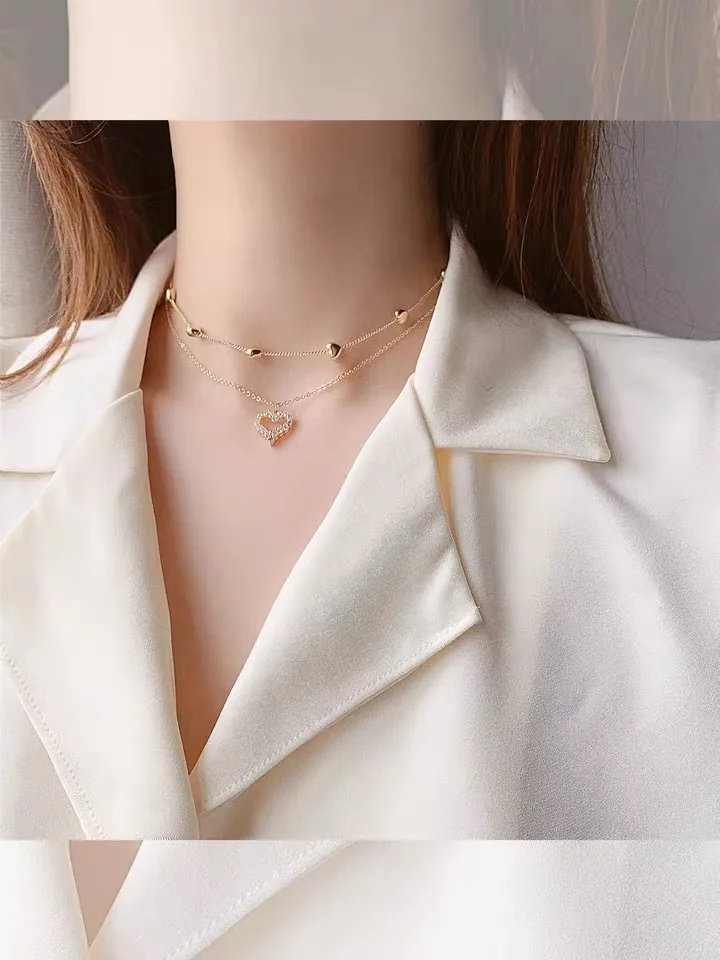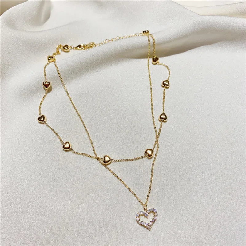 Double layer Chain Heart Choker Necklace For Women Gold Chain Korean Style Collar Female Chocker Aesthetic Jewelry