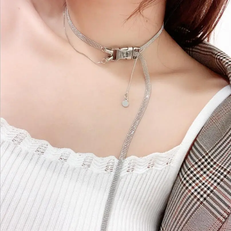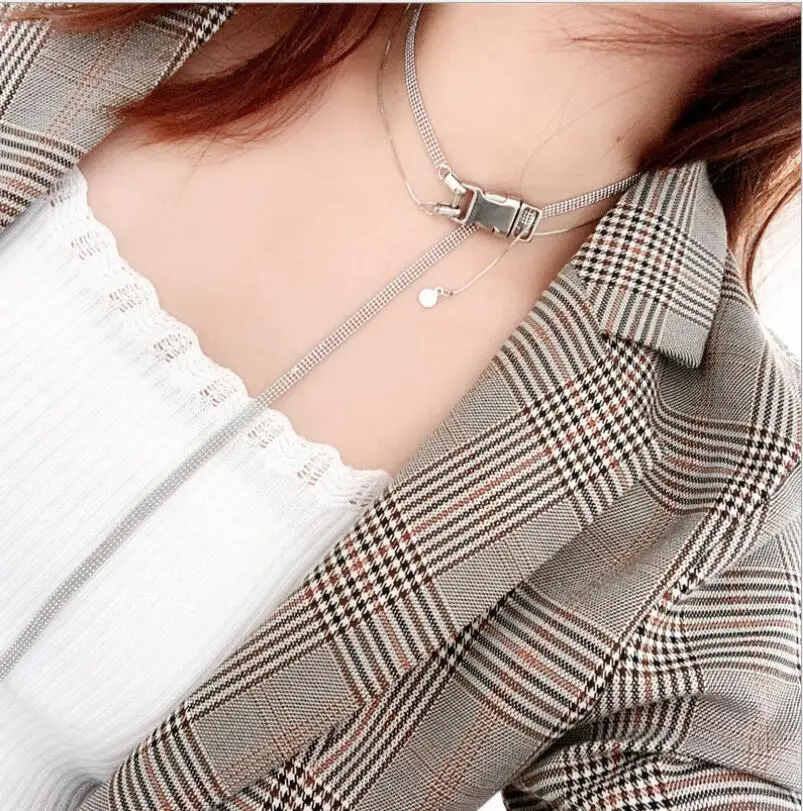 European and American personality street car girl cool minimalist buckle tassel adjustable double layer advanced clavicle chain