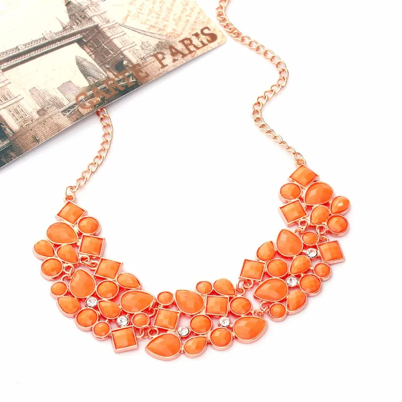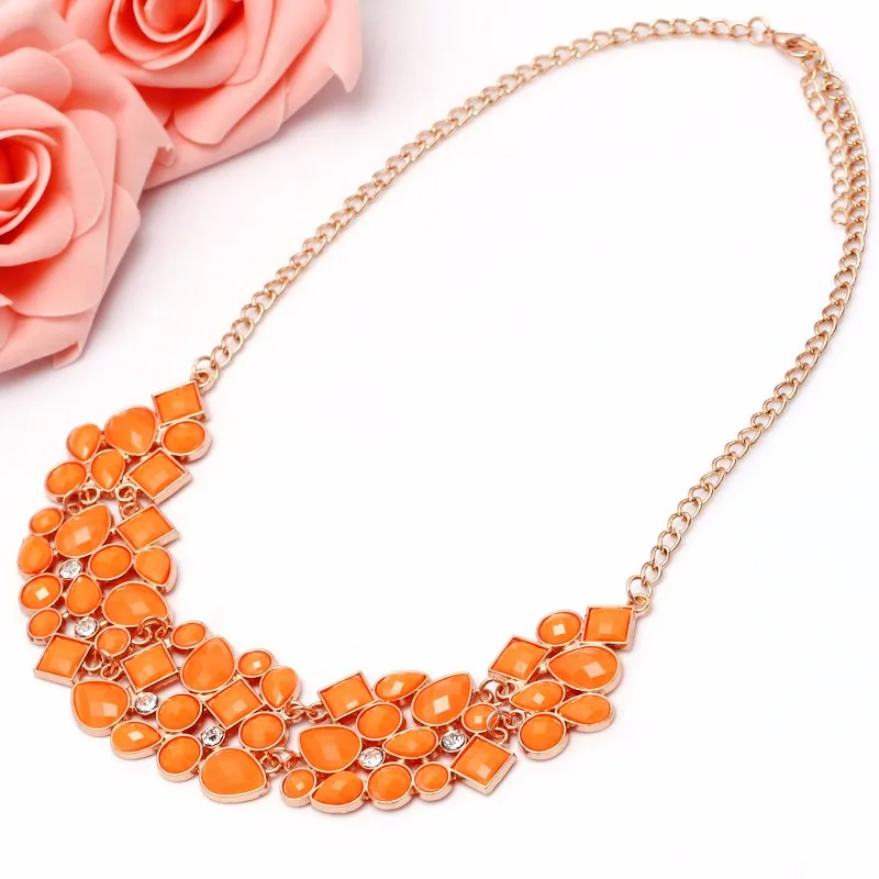 Exaggerated Pendants Necklaces Women Geometic Mosaic Crystal Gold Chain Neon Orange Choker Collares Collier Femme Foulard